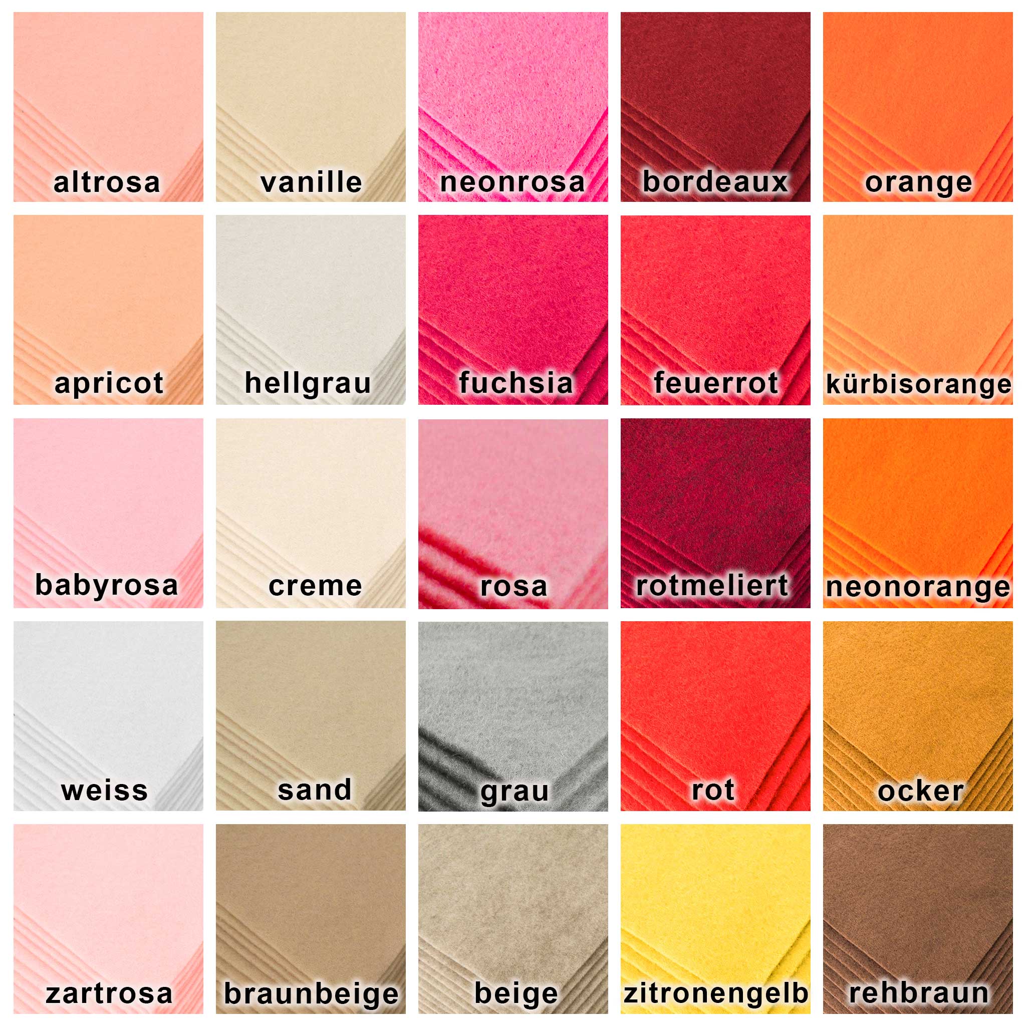 - Flexible Qualität: Der weiche und biegsame Filz lässt sich leicht verarbeiten, egal ob du ihn bekleben, besticken, ausschneiden oder applizieren möchtest.