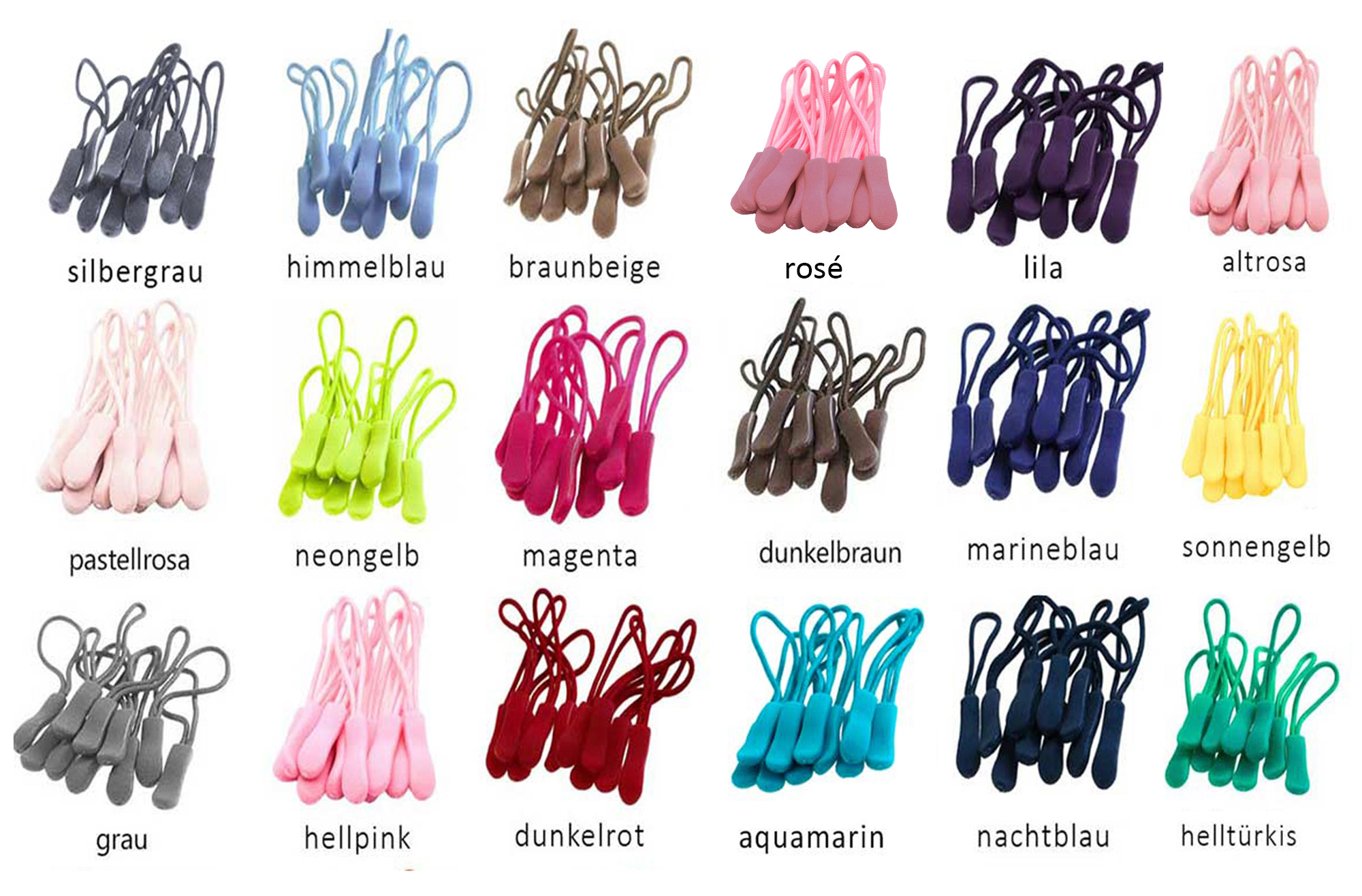 - In unserer Farbauswahl findest Du bestimmt Deine ganz persönliche Lieblingsfarbe oder Du wählst einfach unseren Farbmix. Mit diesen Reißverschluss-Anhängern kannst Du auch schöne Kontraste setzen und mit verschiedenen Farben spielen.