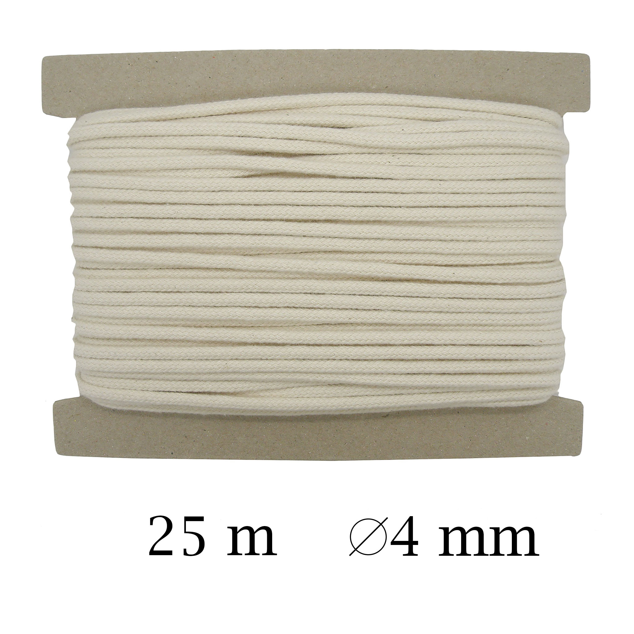 25 m Docht / Lampendocht / Baumwolldocht / Runddocht 4 mm geflochten