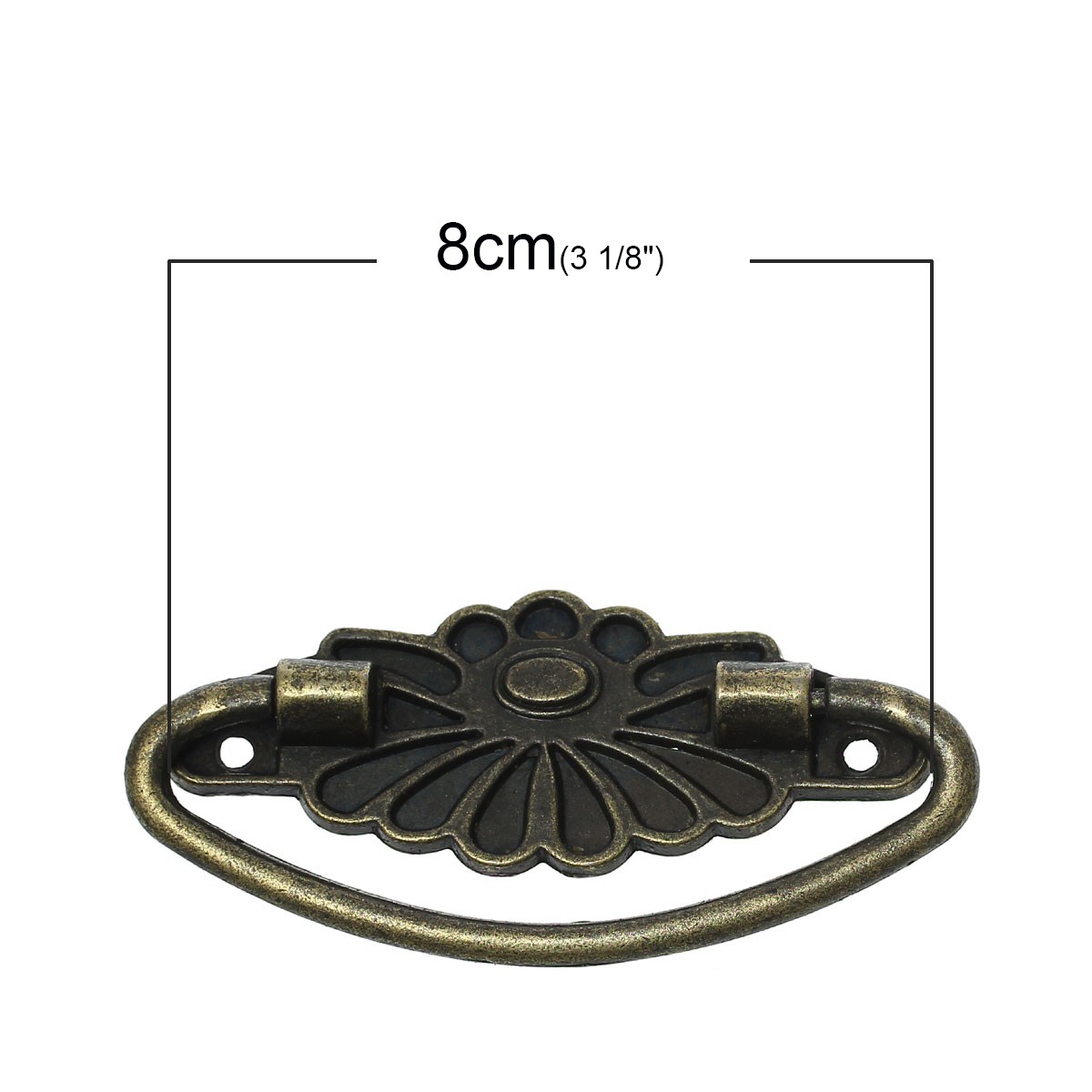 5 Griffe für Schubladen, Schatullen und mehr, 80mmx28mm, antikmessing
