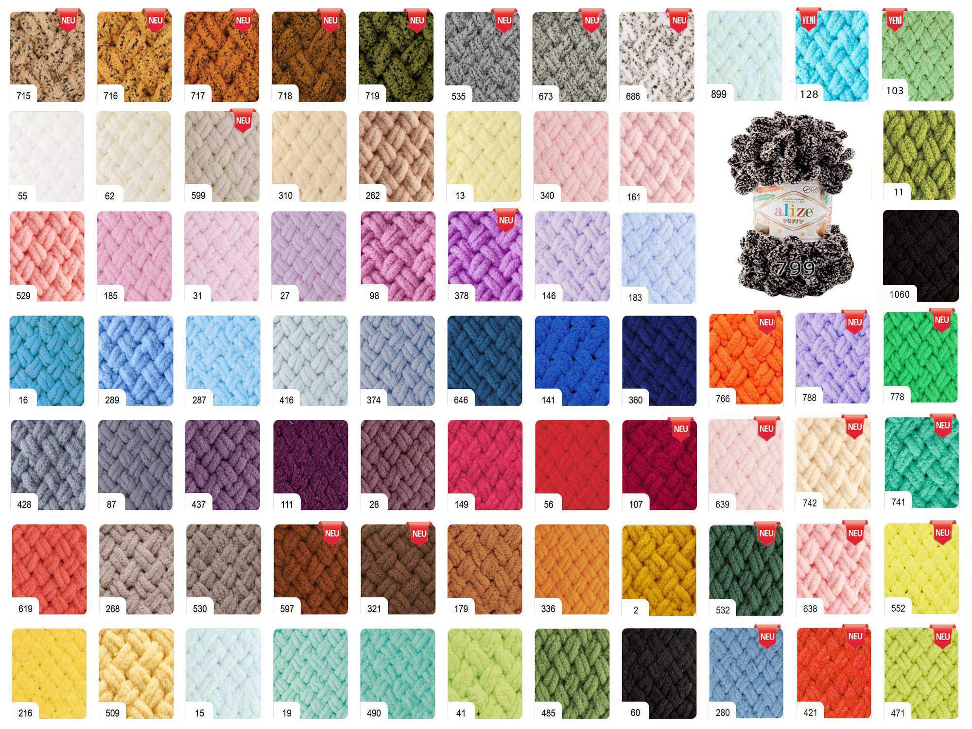 - ALIZE Puffy ist ein plüschiges, super dickes und zauberhaft weiches Strickgarn in Unifarben, welches mit den Fingern gestrickt wird. Die Verarbeitung ist so einfach, dass auch Kinder ihre helle Freude daran haben und schnelle Erfolge erzielen. Es ist ideal für angenehm warme Decken, kuschelige Strickjacken, flauschig weiche Mützen sowie süße Kuscheltiere. Mit seiner schönen Farbauswahl lassen sich traumhafte und kuschelige Babysachen stricken
