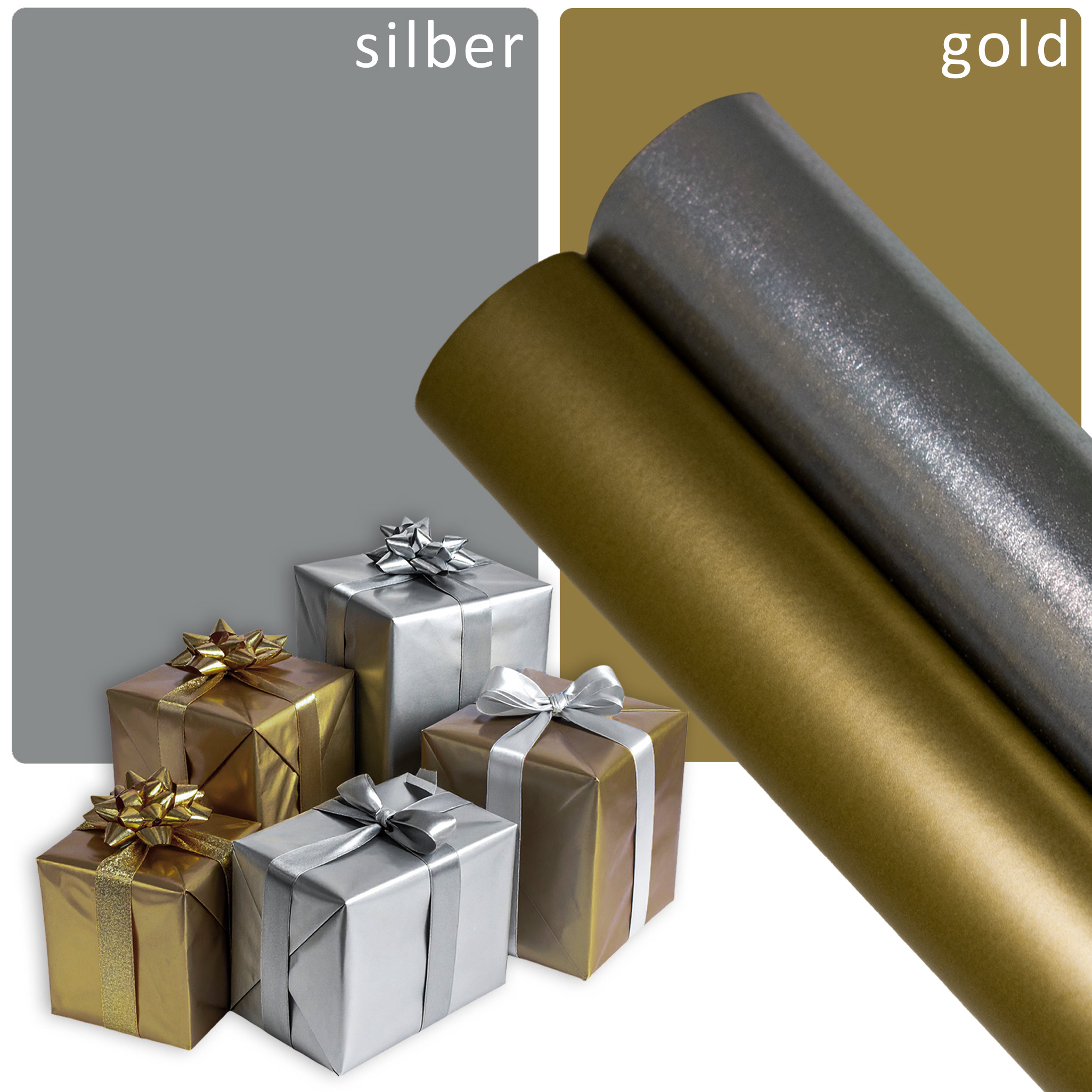 - Luxuriöses Design: Exklusives Geschenkpapier mit metallischem Effekt in glänzendem Gold oder edlem Silber – ideal als hochwertiges Geschenkpapier für alle festlichen Anlässe.