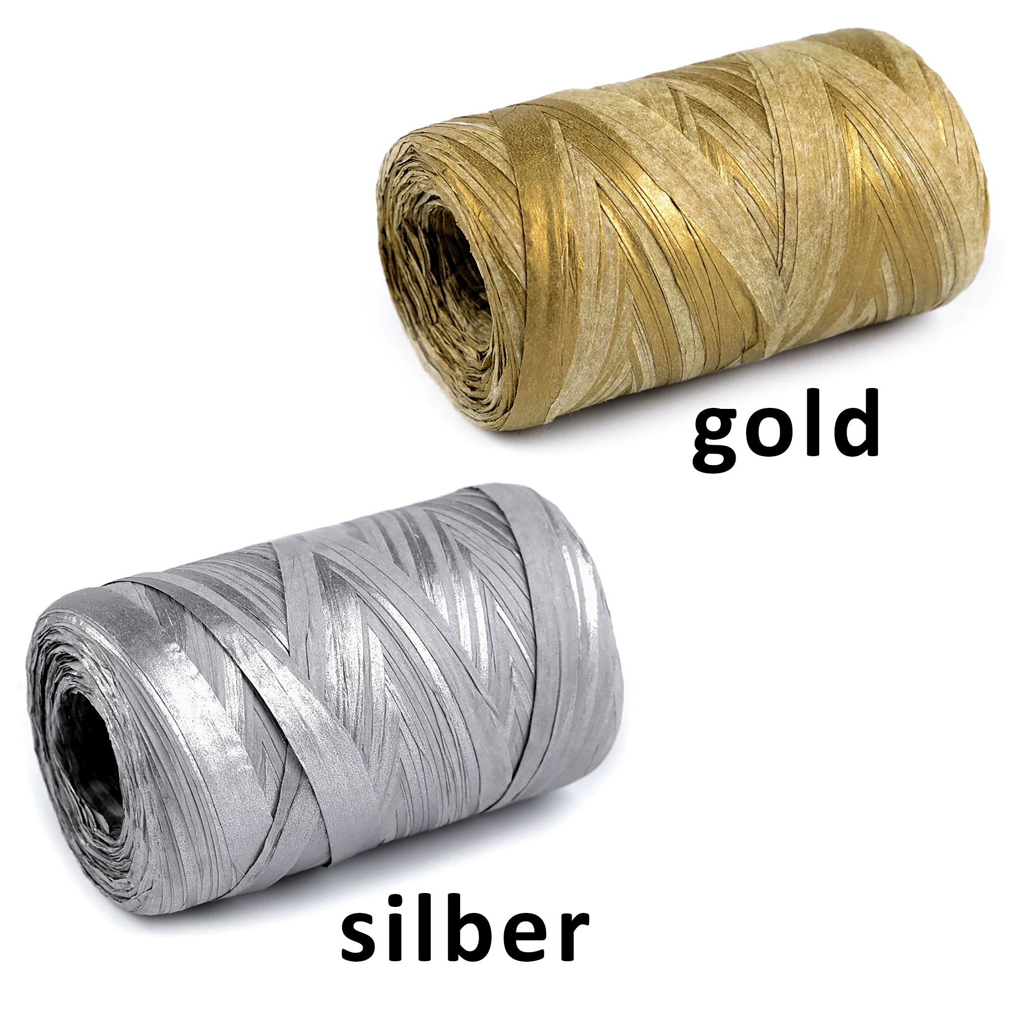 Raffia Bast Papierschnur mit metallischen Effekt 80m Geschenkband Dekoband Papierband