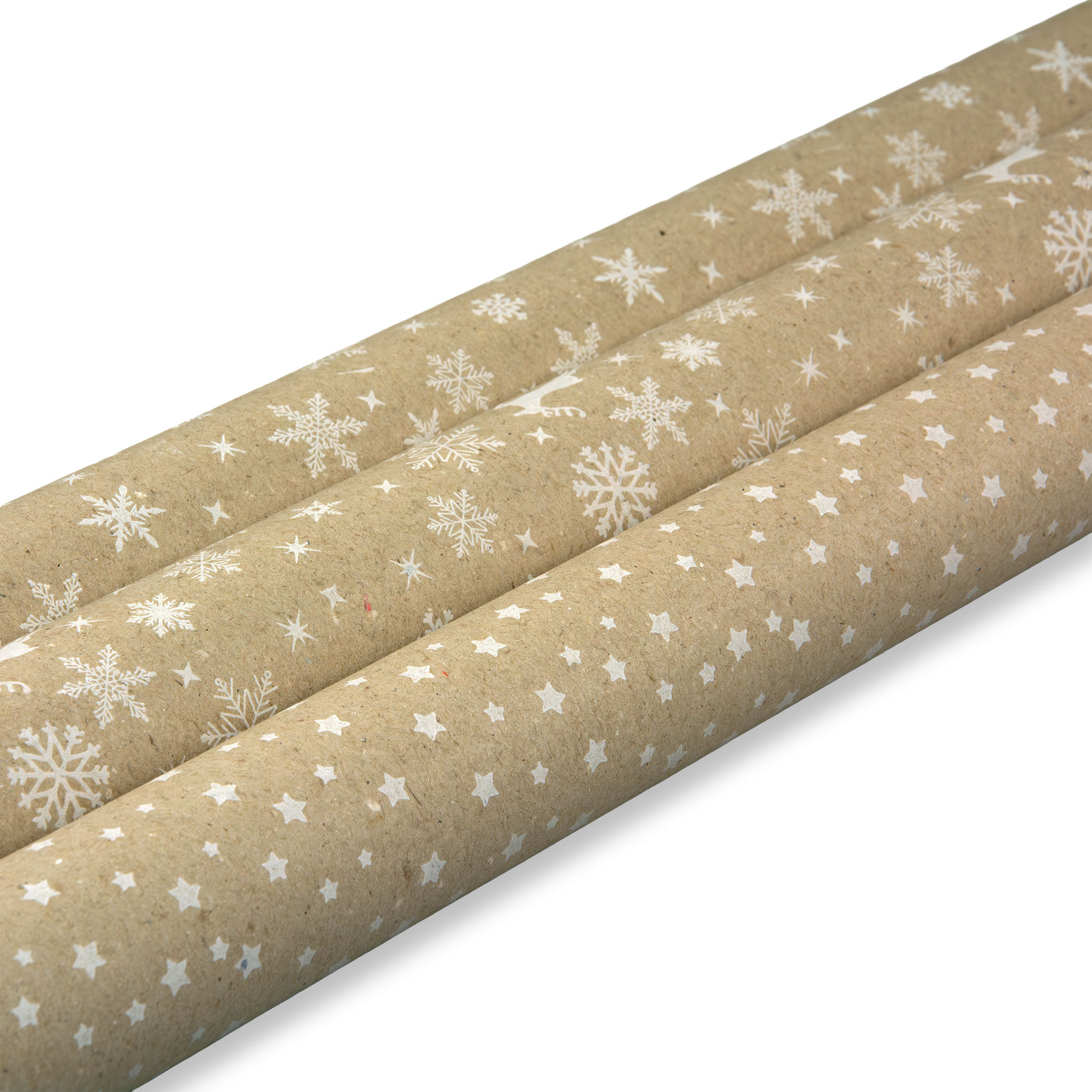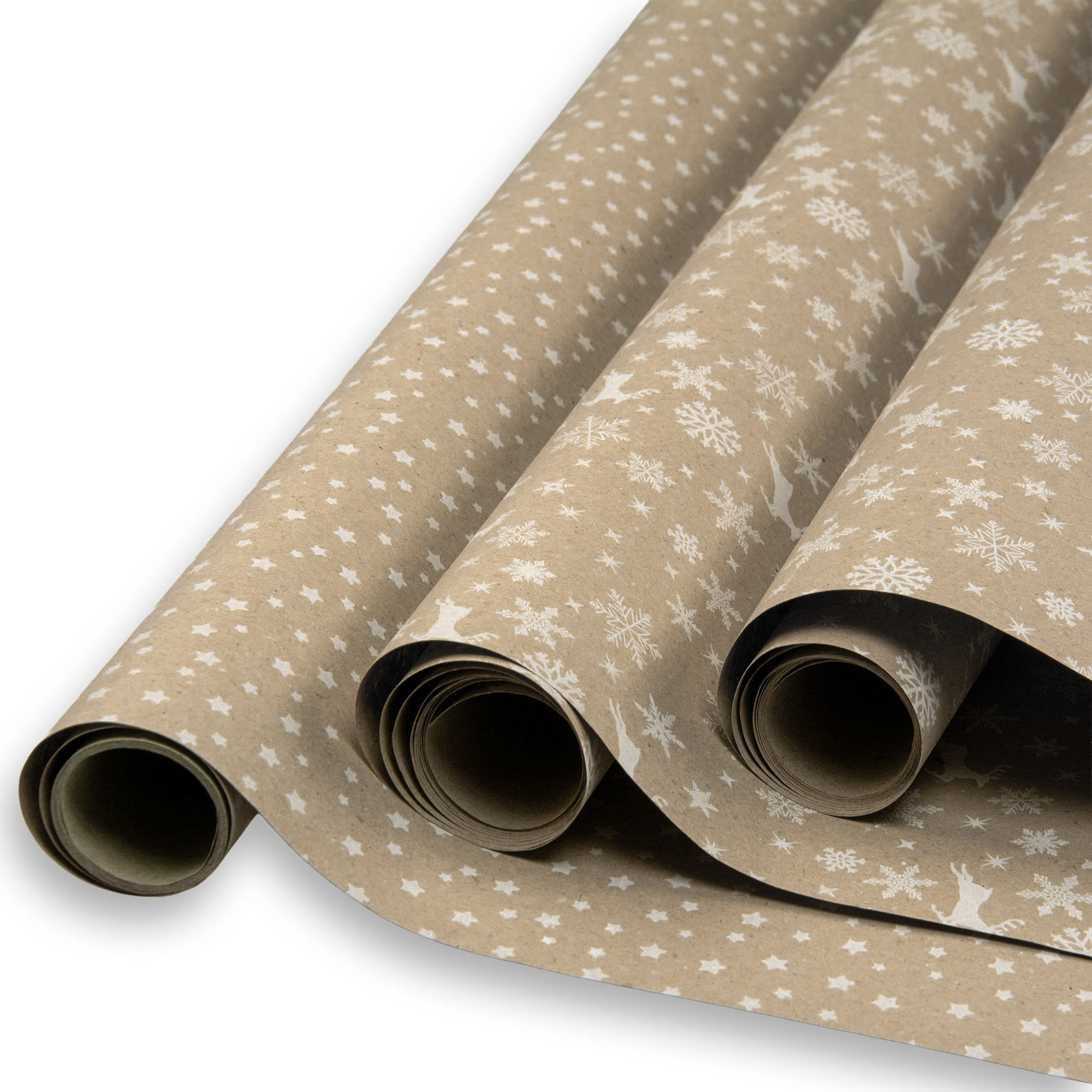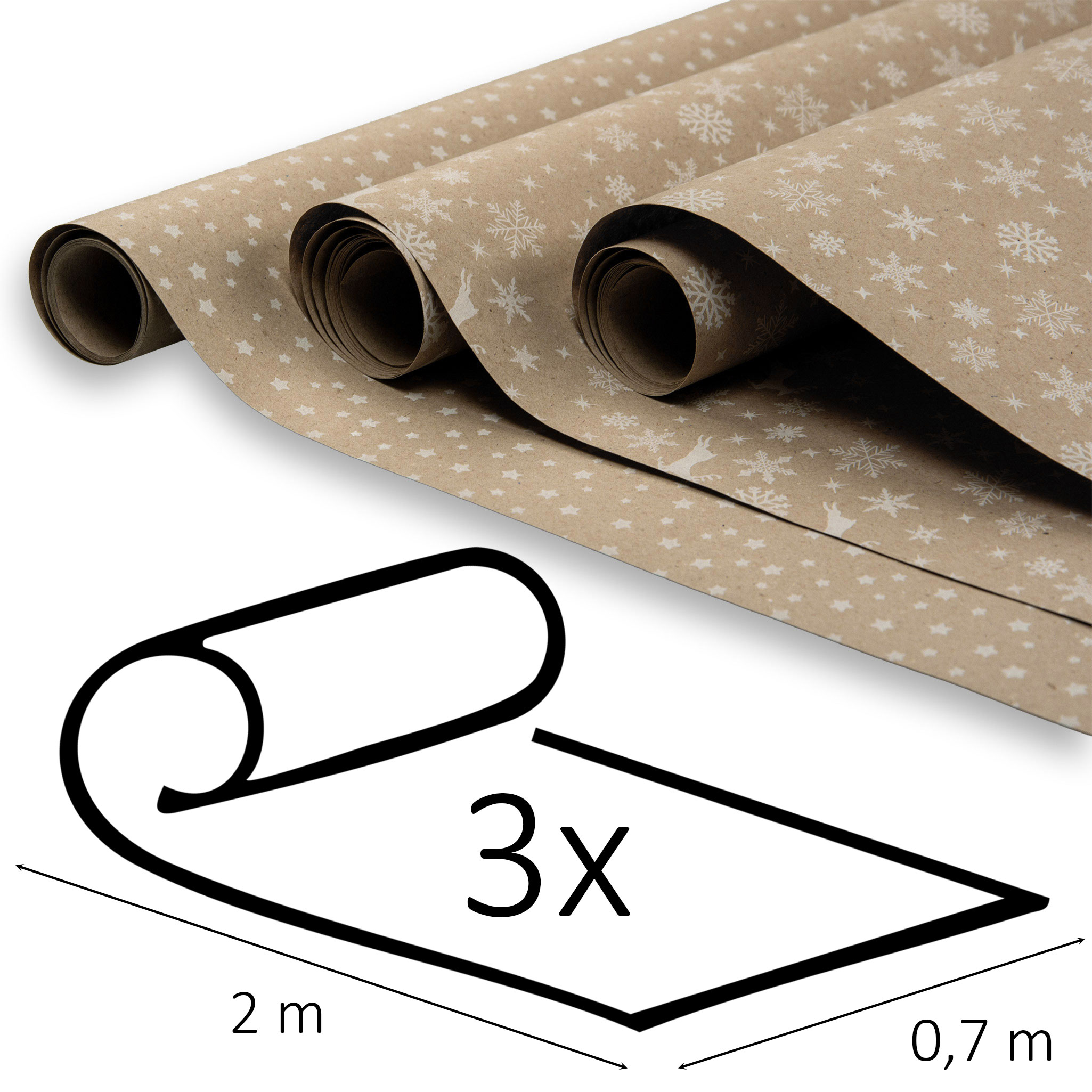 3 Rollen Weihnachtsgeschenkpapier natur 0,7x2m Geschenkpapier Geschenkpapierrollen Dekopapier verschiedene Motive
