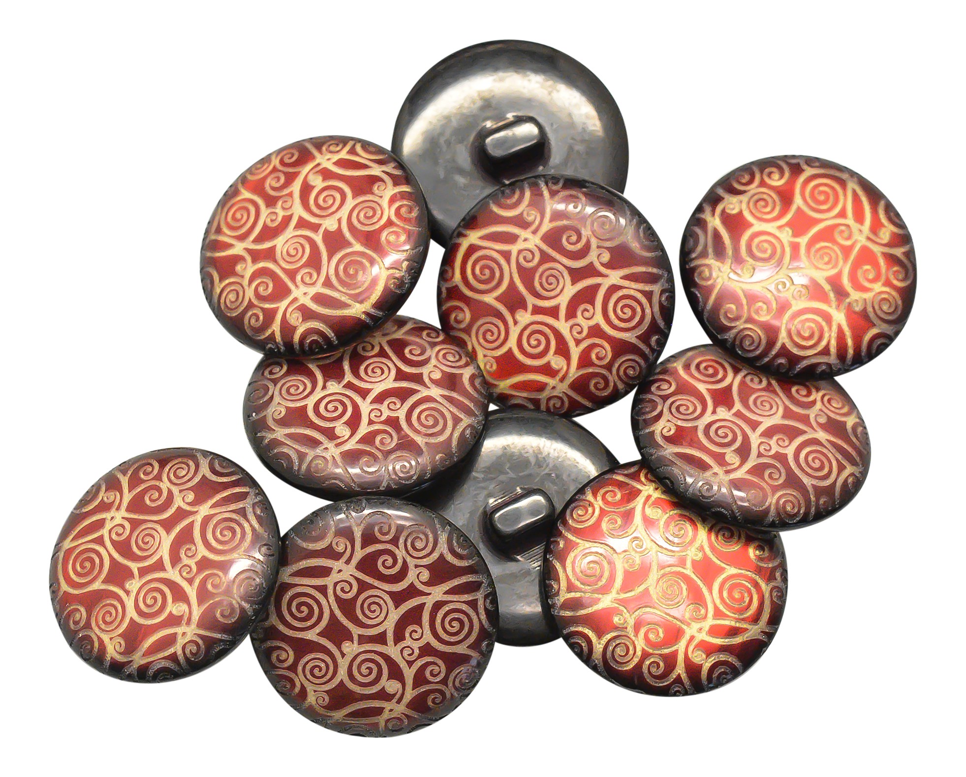 Edler Knopf mit floraler Gravur 23 mm mysterious red (1 Stück)