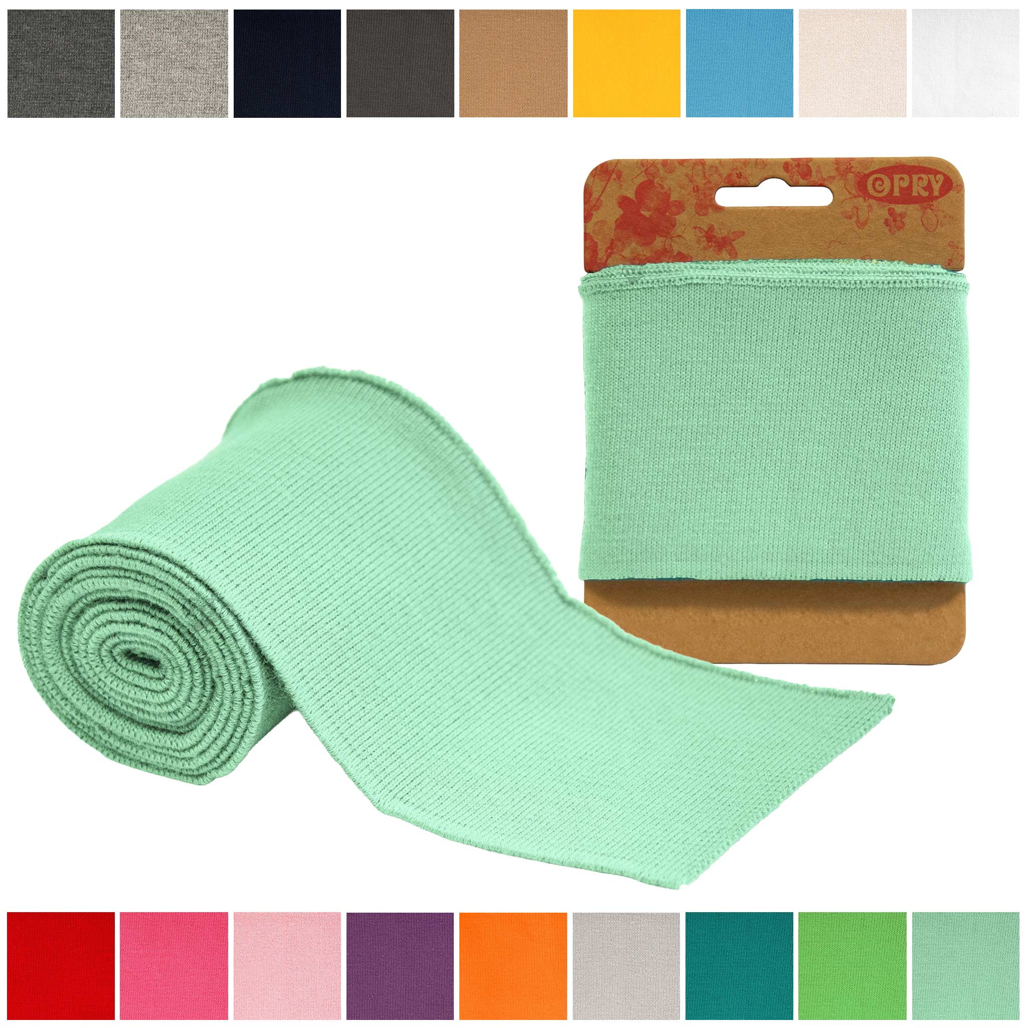 - Mit einer Länge von 110 cm und einer Breite von 6,5 cm eignet sich das Bündchen für Ärmel, Säume, Halsausschnitte und viele textile Anwendungen.
