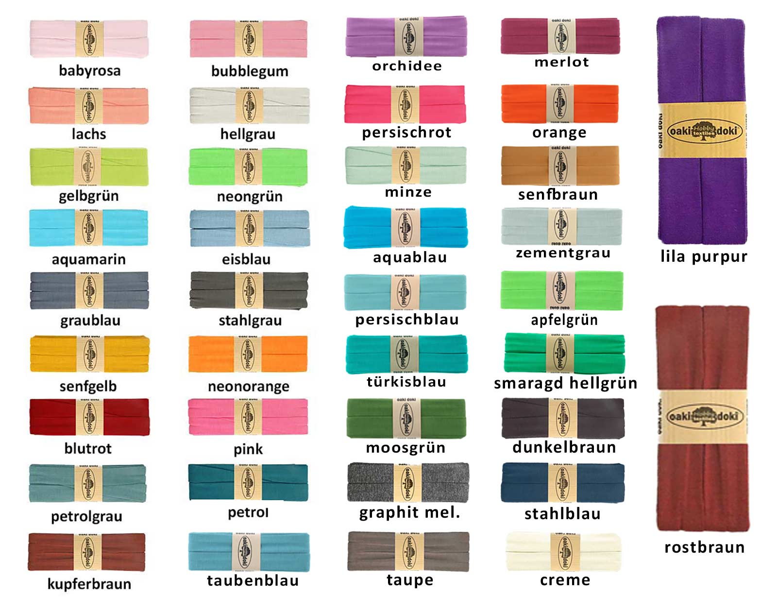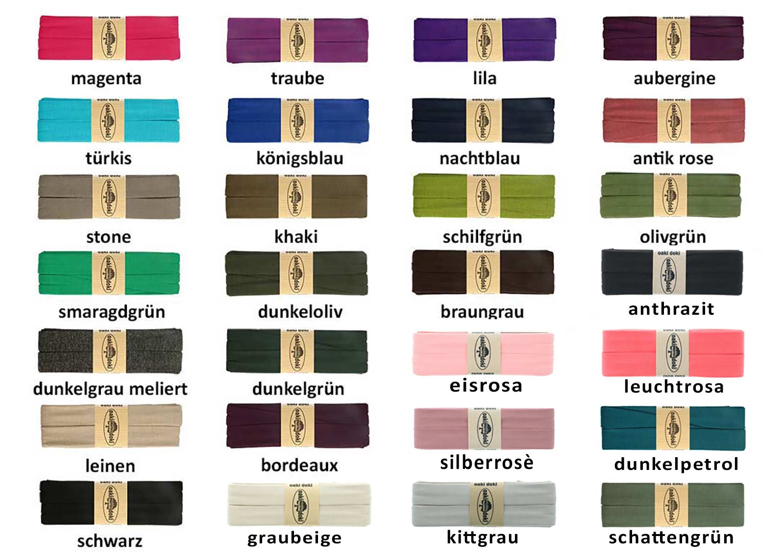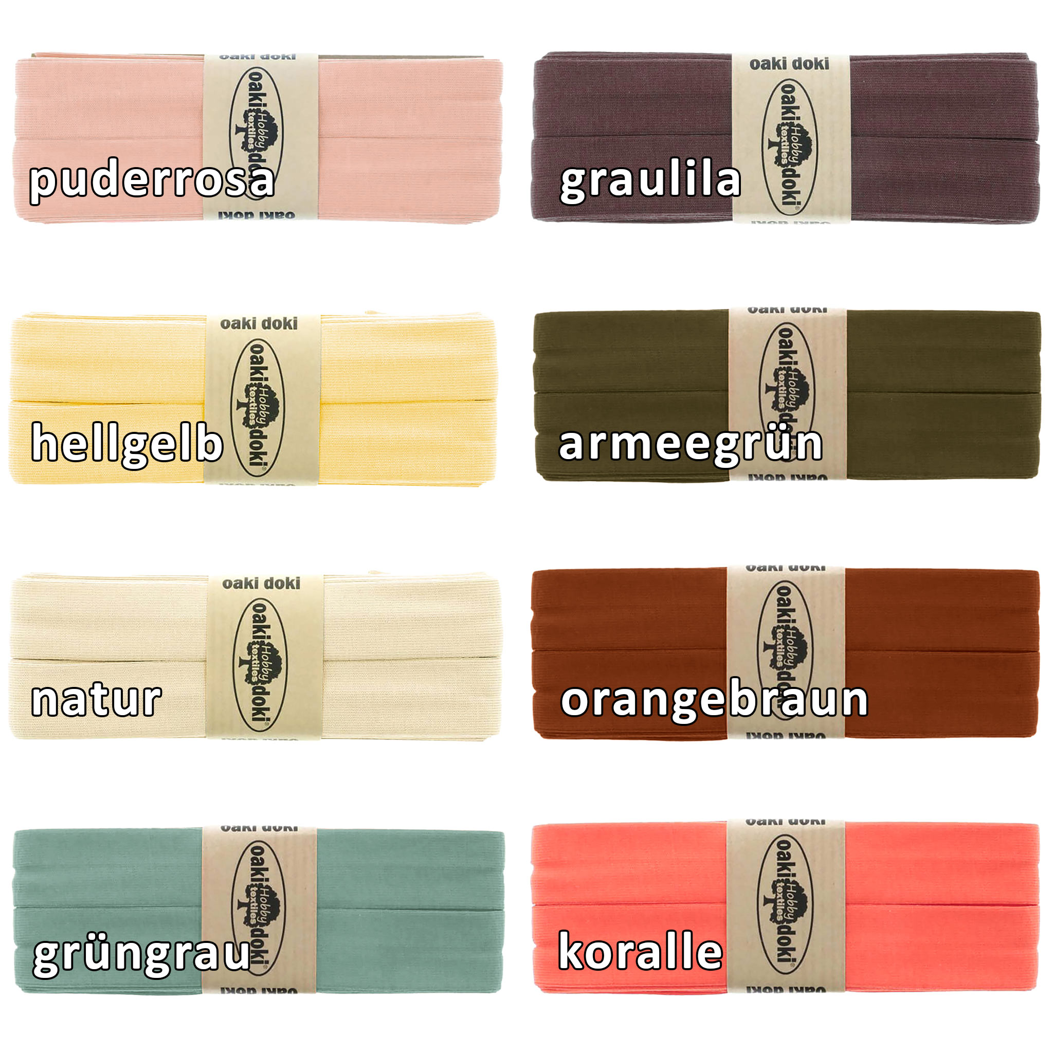 Gib deinen Jersey-Kreationen den letzten Schliff und verabschiede dich von unsauberen Kanten – mit dem Oaki-Doki-Jersey-Schrägband werden deine Nähprojekte zum echten Blickfang!