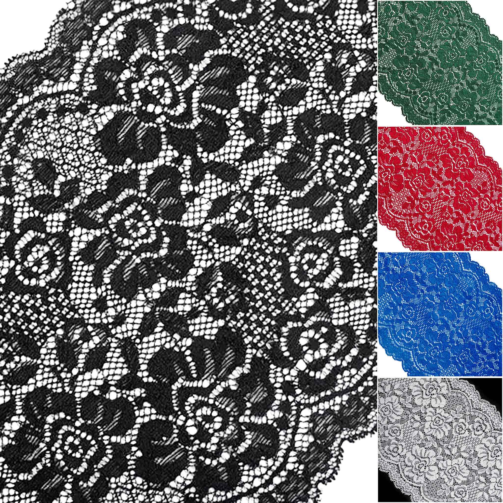 Elastische Spitze Blumenmotiv ab 0,5m x 18cm Spitzenborte Dessousspitze Tischband Farbwahl