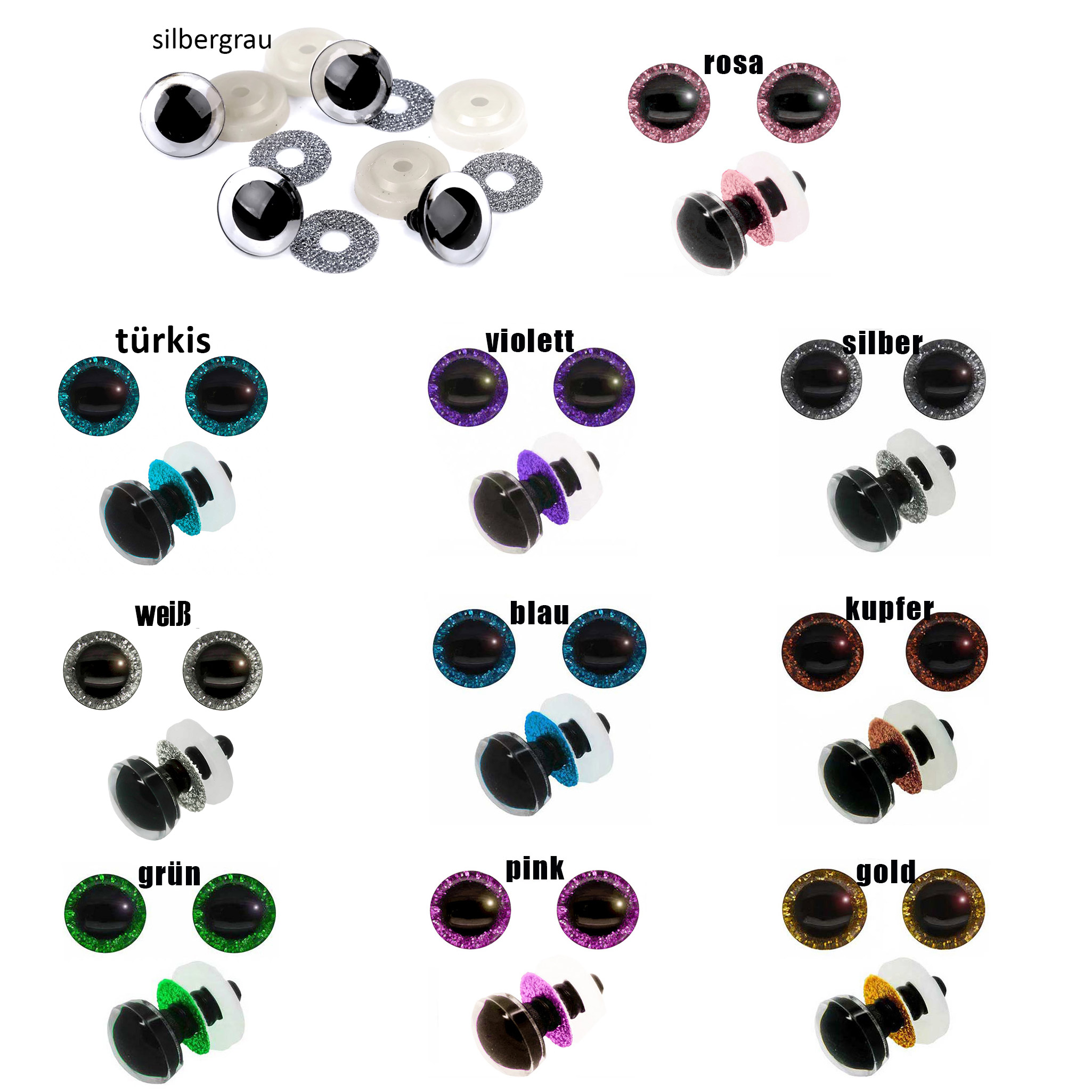 1 Paar Glitzer-Augen 12 - 40mm m. Gegenstück Sicherheitsaugen Amigurumis Kuscheltiere Teddy Variantenwahl