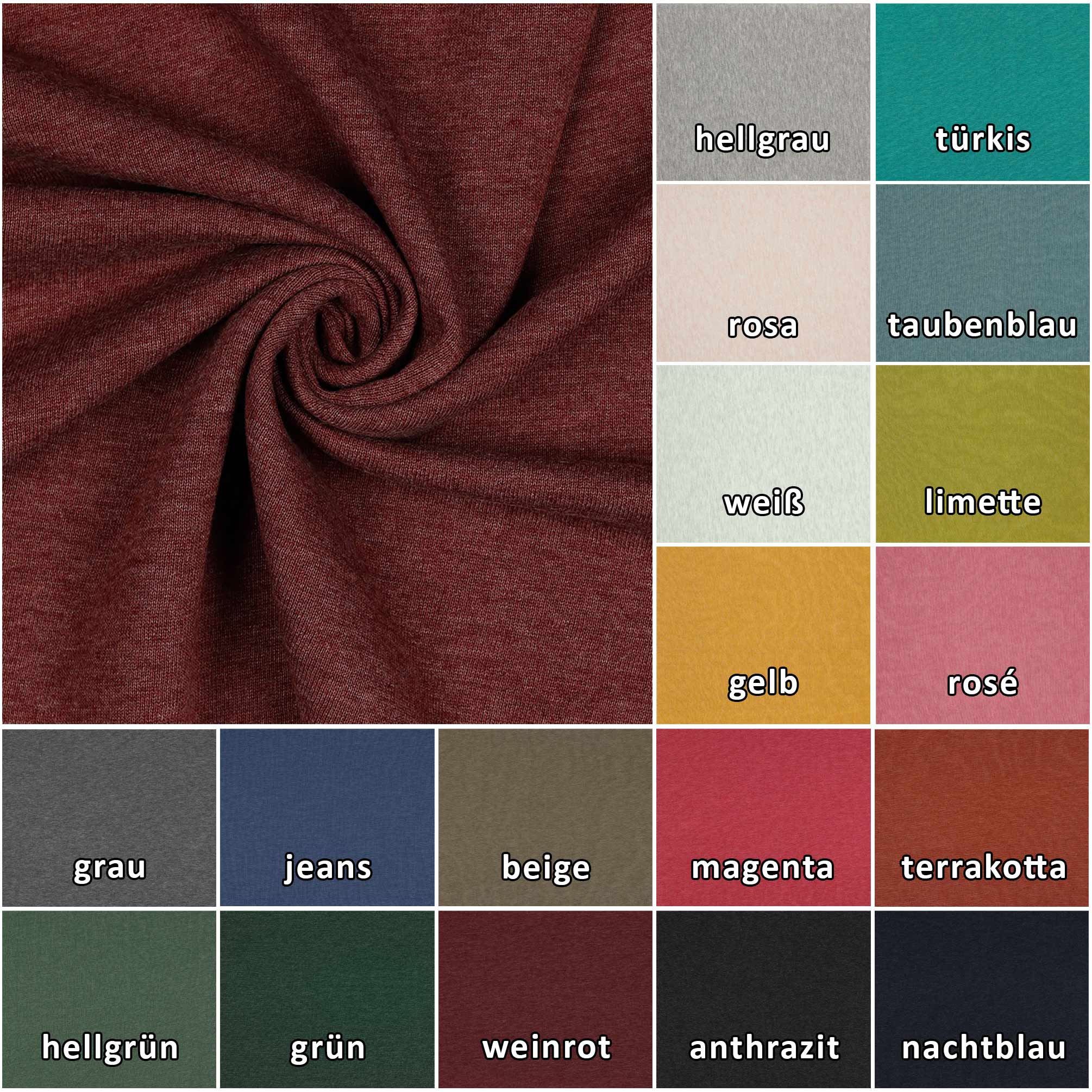 - Der melierte Basistoff ist in vielen Farben verfügbar