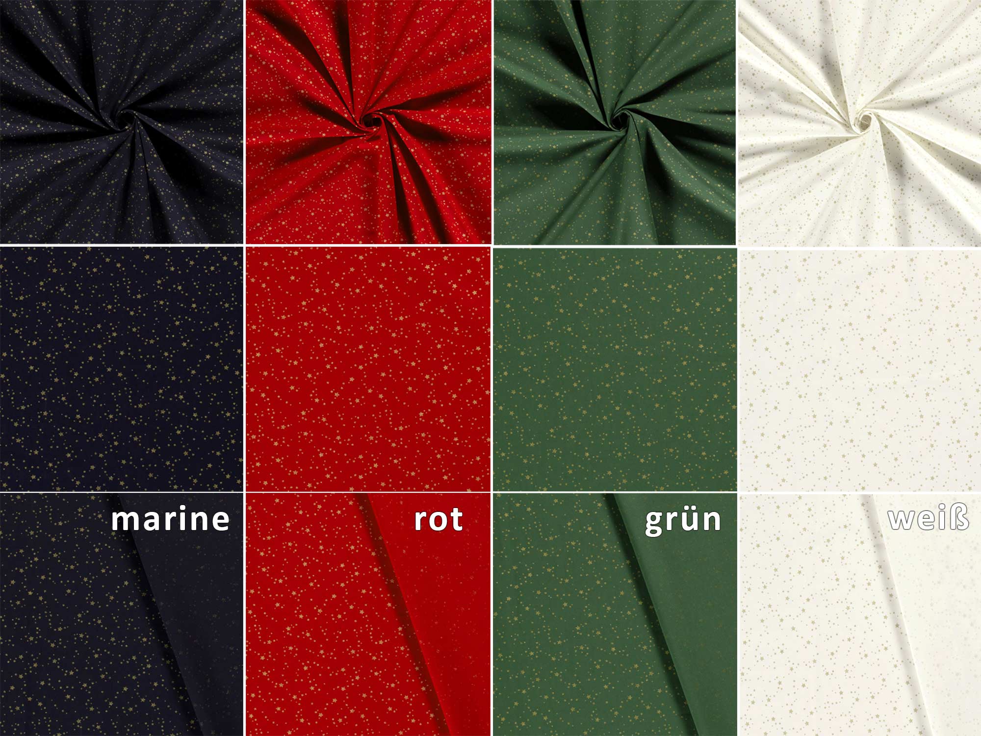 - Glitzernd schimmern Weihnachtssterne über den sanften Stoff. Für die Vorweihnachtszeit lässt sich der Stoff wunderbar zu einem tollen Adventskalender vernähen. Du kannst den Stoff aber auch zu weihnachtlichen Decken und Kissen verarbeiten oder ihn unter den festlich geschmückten Weihnachtsbaum drapieren.