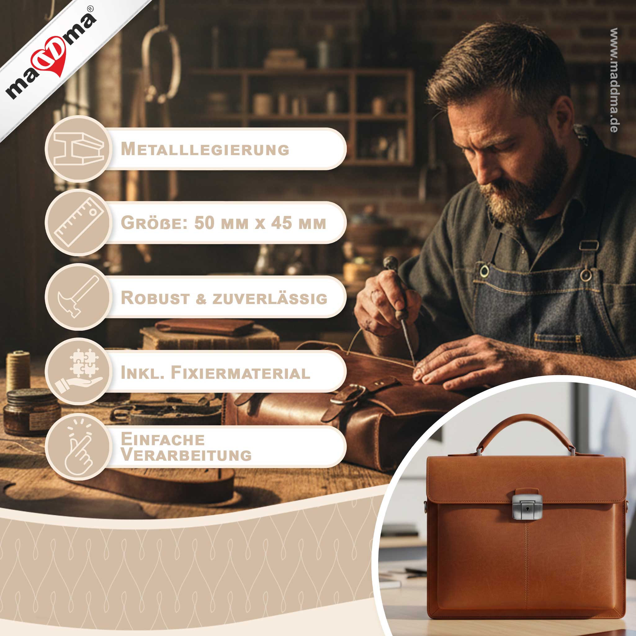 - Maße: ca. 50 mm x 45 mm – ideal für mittlere bis große Taschen