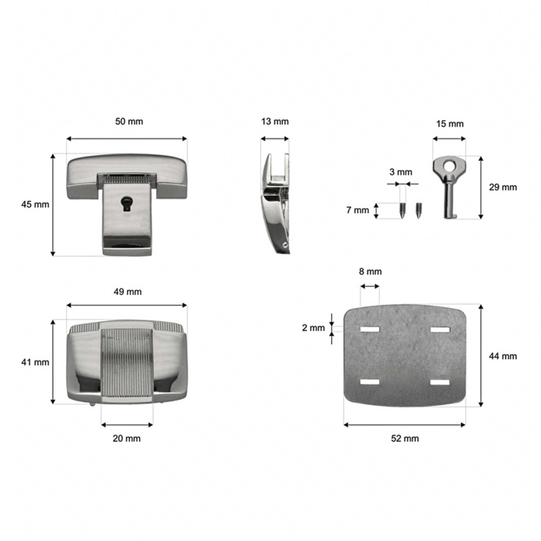 Mappenschloss aus Metall für Taschen 50x45mm inkl. Schlüssel Verschluss Taschenschloss Farbwahl