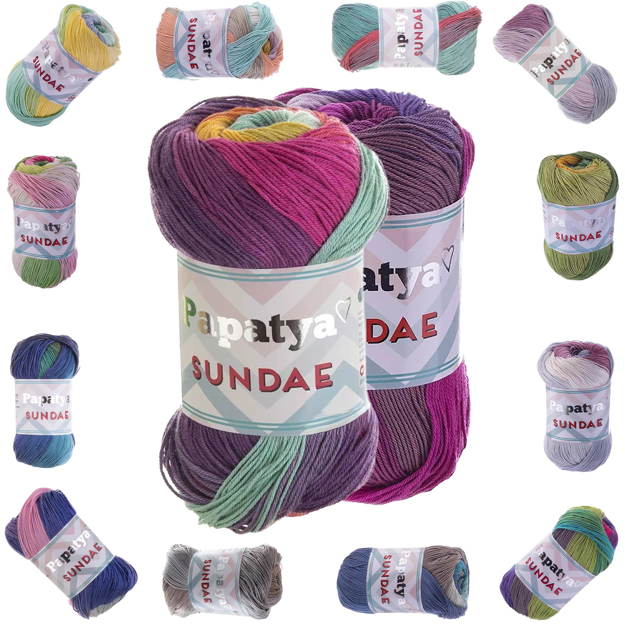 Papatya Sundae Strickgarn 5x100g – Farbverlaufsgarn – Oeko-Tex Sommergarn Häkelgarn für Sommerkleidung & Accessoires