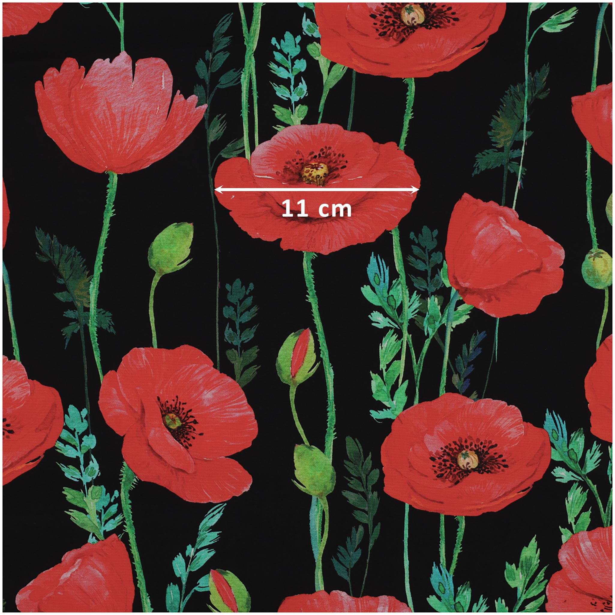 - Das schöne Mohnblumenmuster ist einfach schön anzusehen. Er bringt einen Hauch von Natur in deine selbstgemachten Sachen.