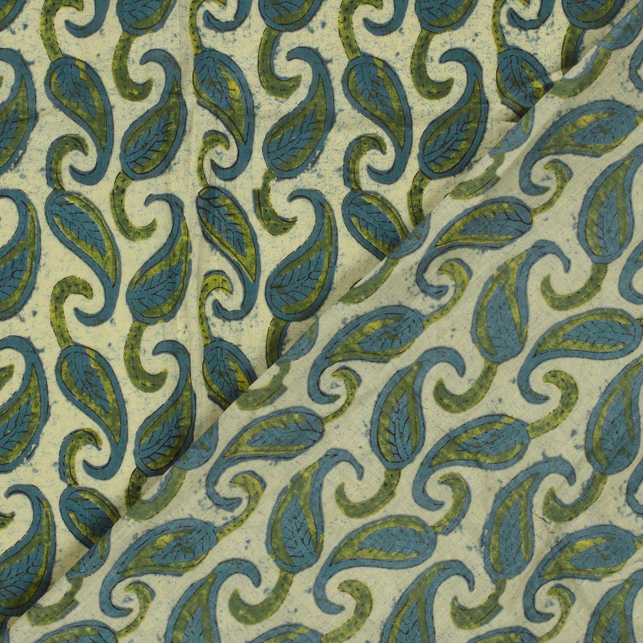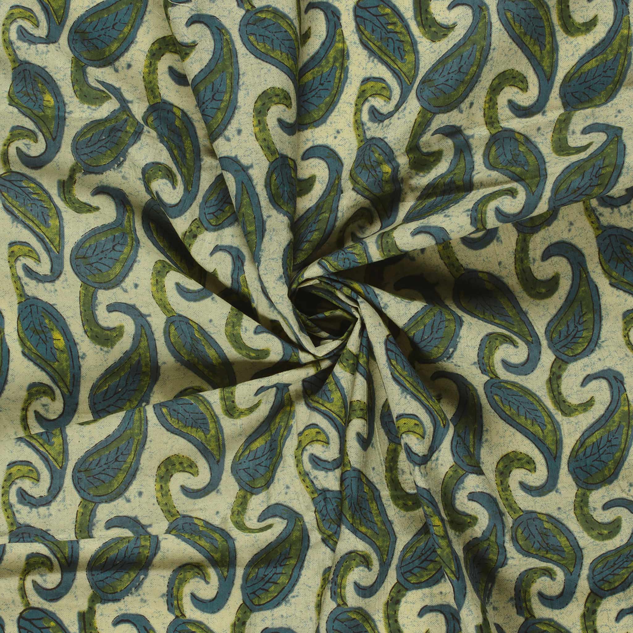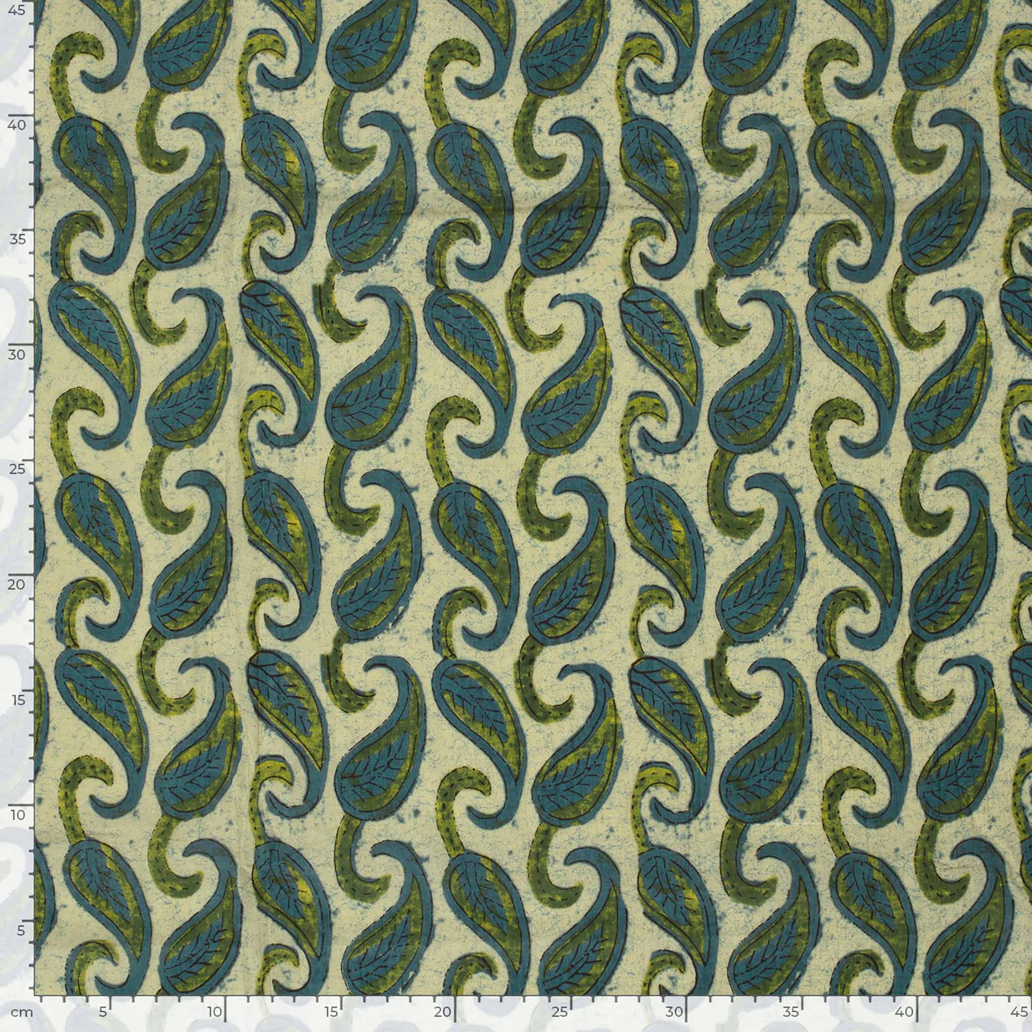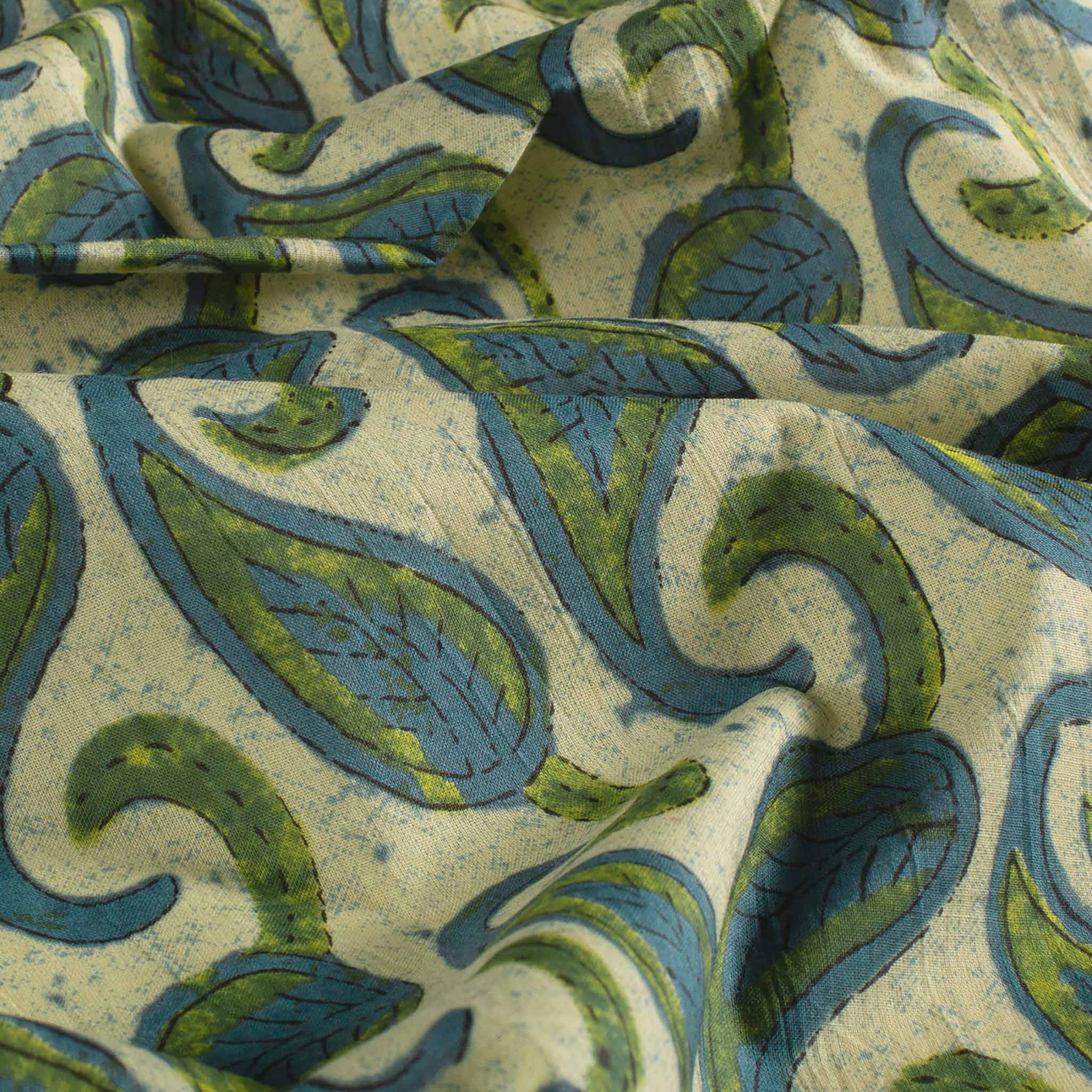 Baumwollstoff Floral Blätter Oliv Blau 145cm Paisley Batik Baumwoll Meterware Baumwolle OEKO-TEX Leichter Sommerstoff für Blusen Kleider & Tücher