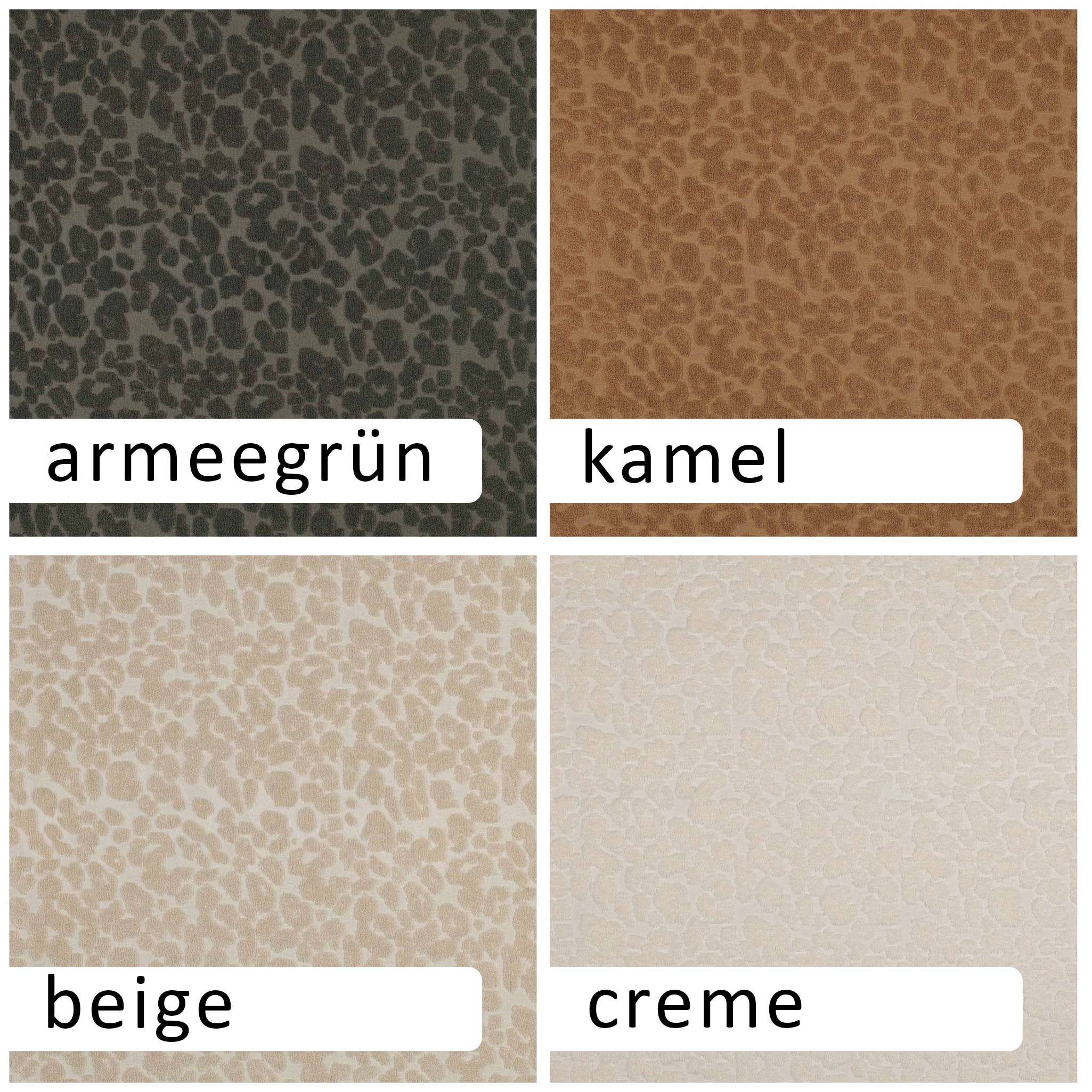- Design: Das feine, unifarbene Leopardenmuster wird durch die aufwendige Jacquard-Bindung direkt in den Stoff eingewebt.