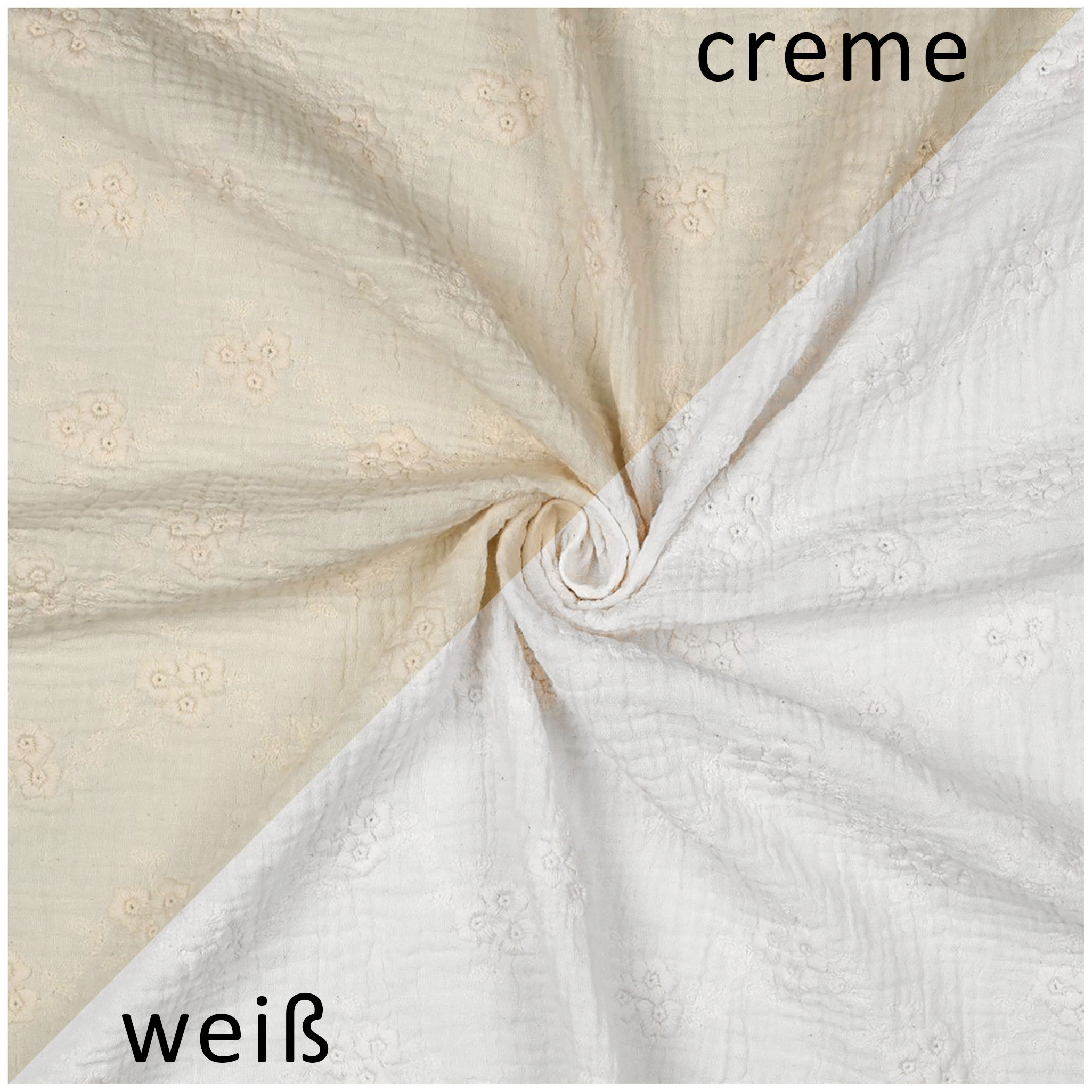 Musselin-Stoff gestickte Blumen Zuschnitt ab 50x125cm uni Oeko-Tex Double Gauze Windeltuch Mulltuch
