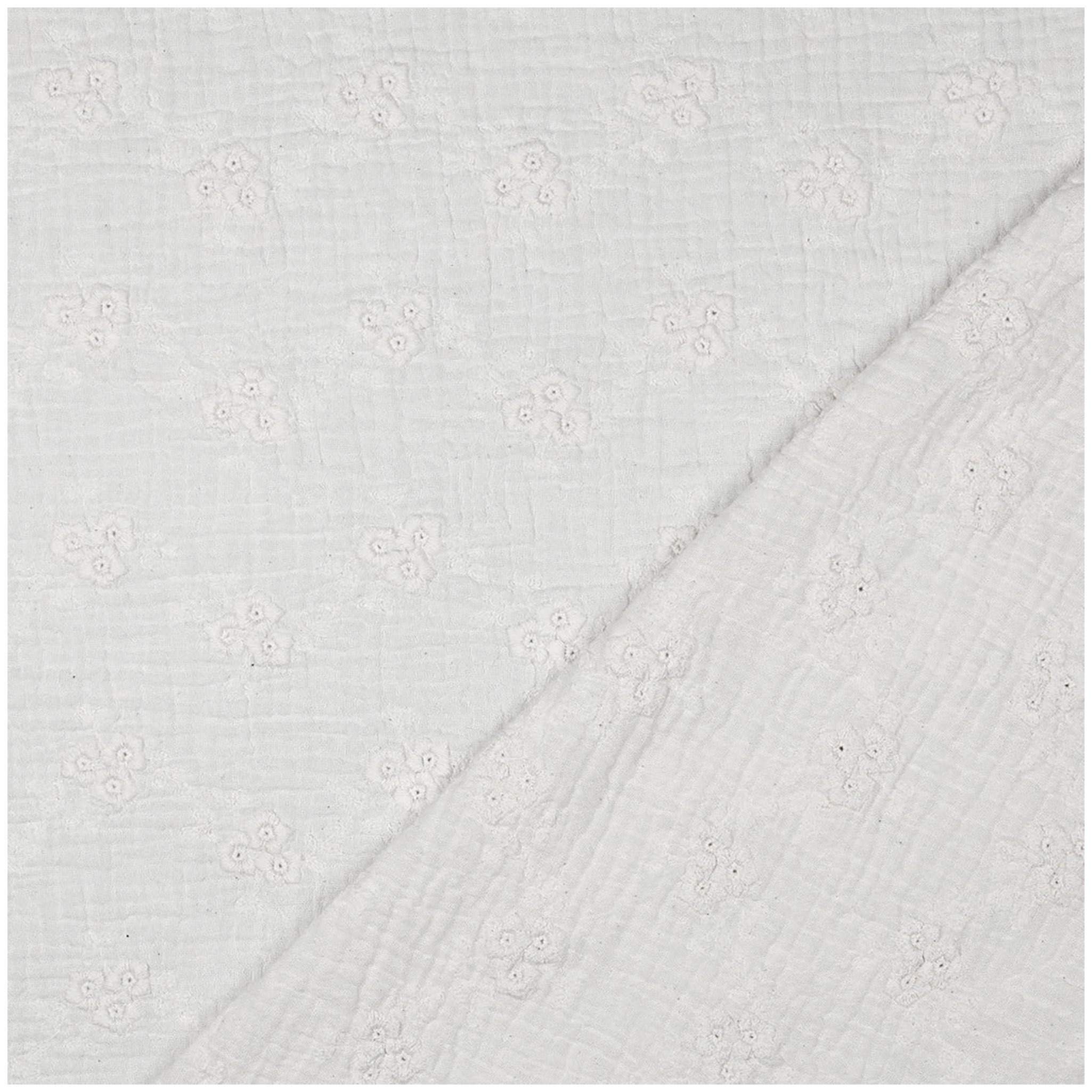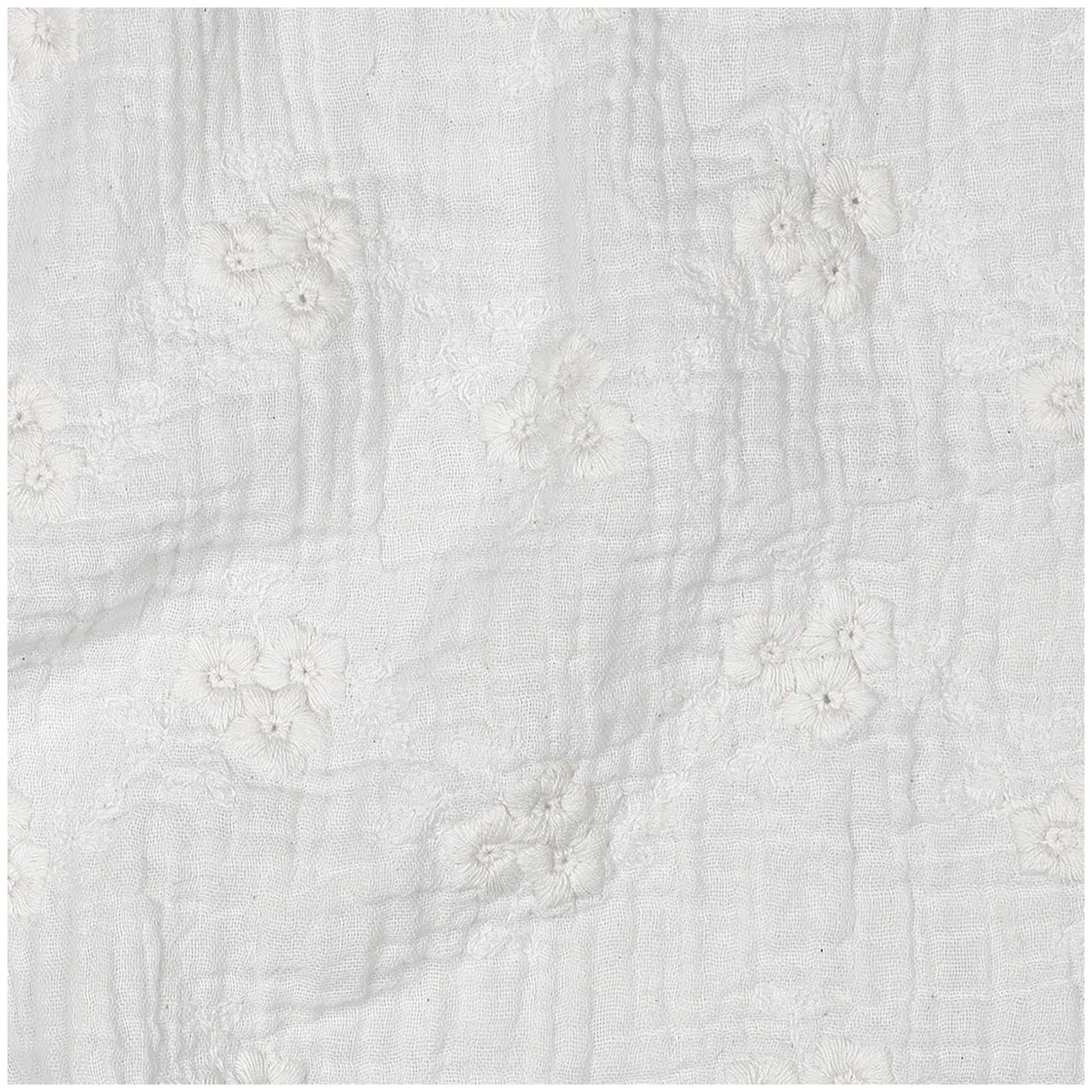 Dieser Musselin-Stoff besteht aus 100 % Baumwolle und zeichnet sich durch seine weiche, angenehme Haptik aus. Die gestickten Blumen verleihen dem Material eine dezente, strukturierte Optik, die jedem Projekt eine natürliche und handwerkliche Note verleiht. Durch die feine Textur entsteht ein Stoff, der leicht fällt, sich angenehm anfühlt und gleichzeitig stabil genug ist, um vielfältige Nähideen umzusetzen.