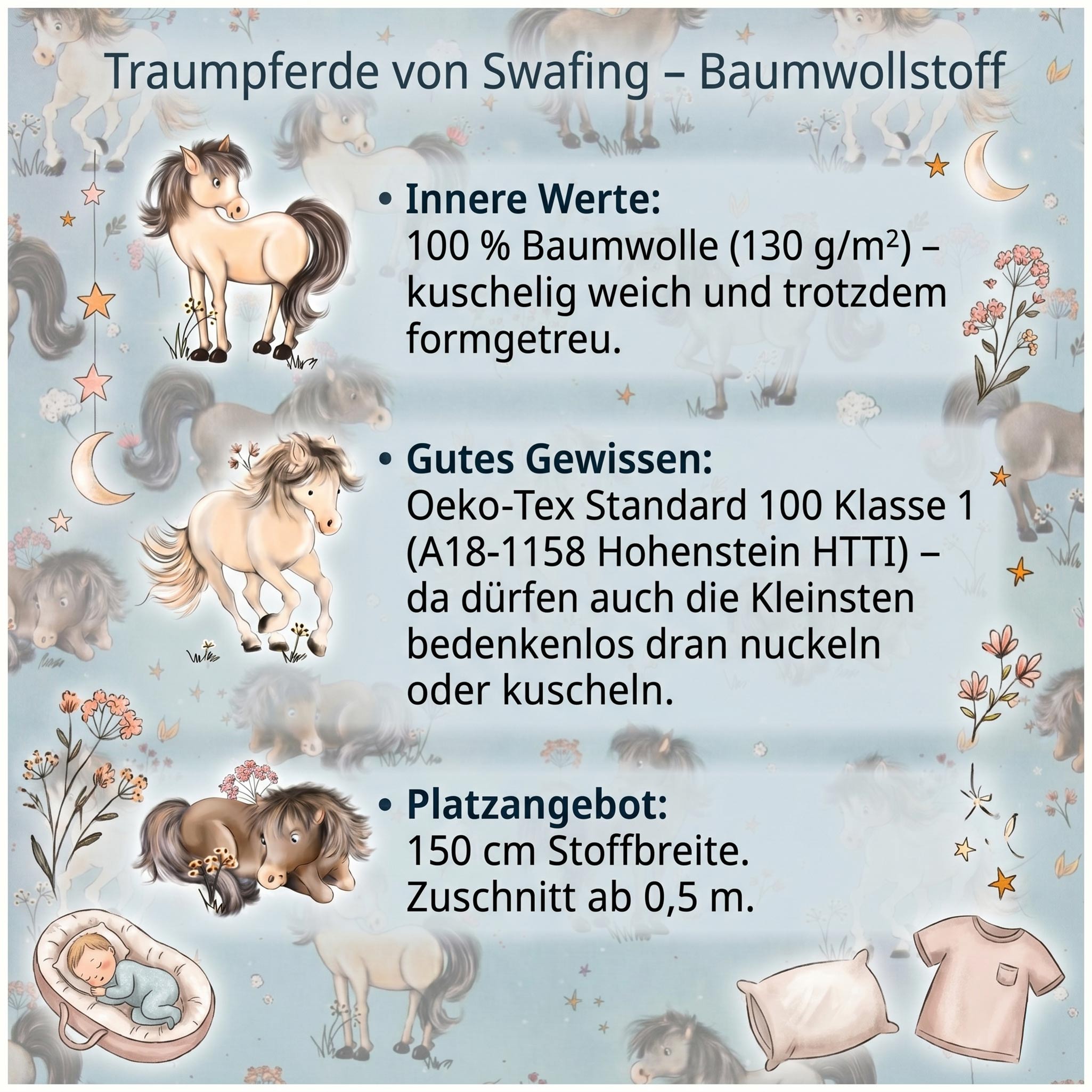 Baumwollstoff Traumpferde von Swafing 1/2 Meterware – Baumwolle Oeko-Tex Kl. 1 – 150cm breit – Ideal für Kinderkleidung, Kissen, Bettwäsche & Deko