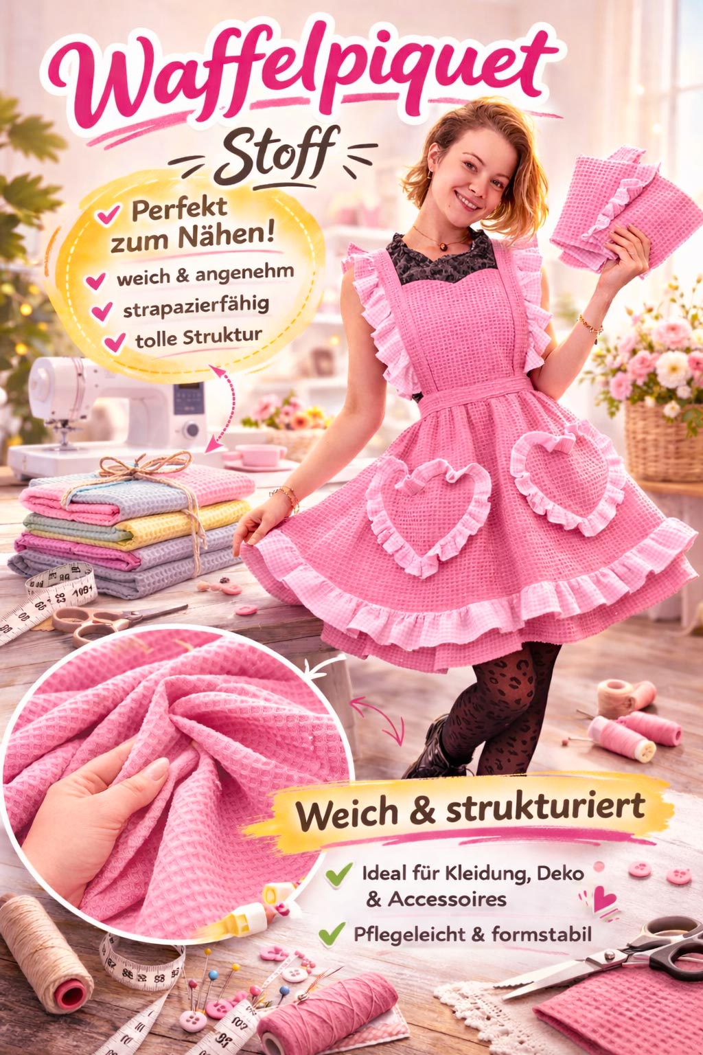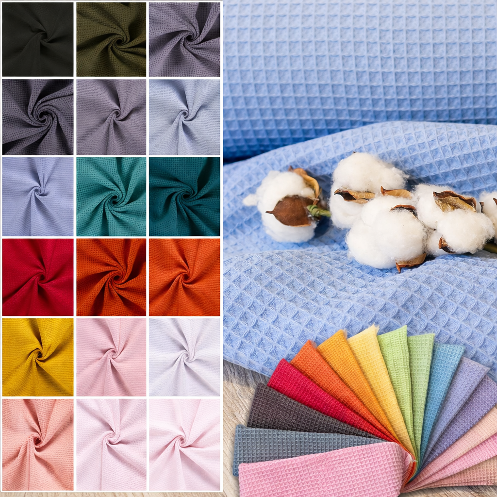 - Hochwertiger Waffelpiqué: Dieser Stoff aus 100 % reiner Baumwolle besticht durch seine markante, dreidimensionale Waffelstruktur. Mit einer Breite von 150 cm bietet die Meterware ideale Voraussetzungen für großflächige Nähprojekte.