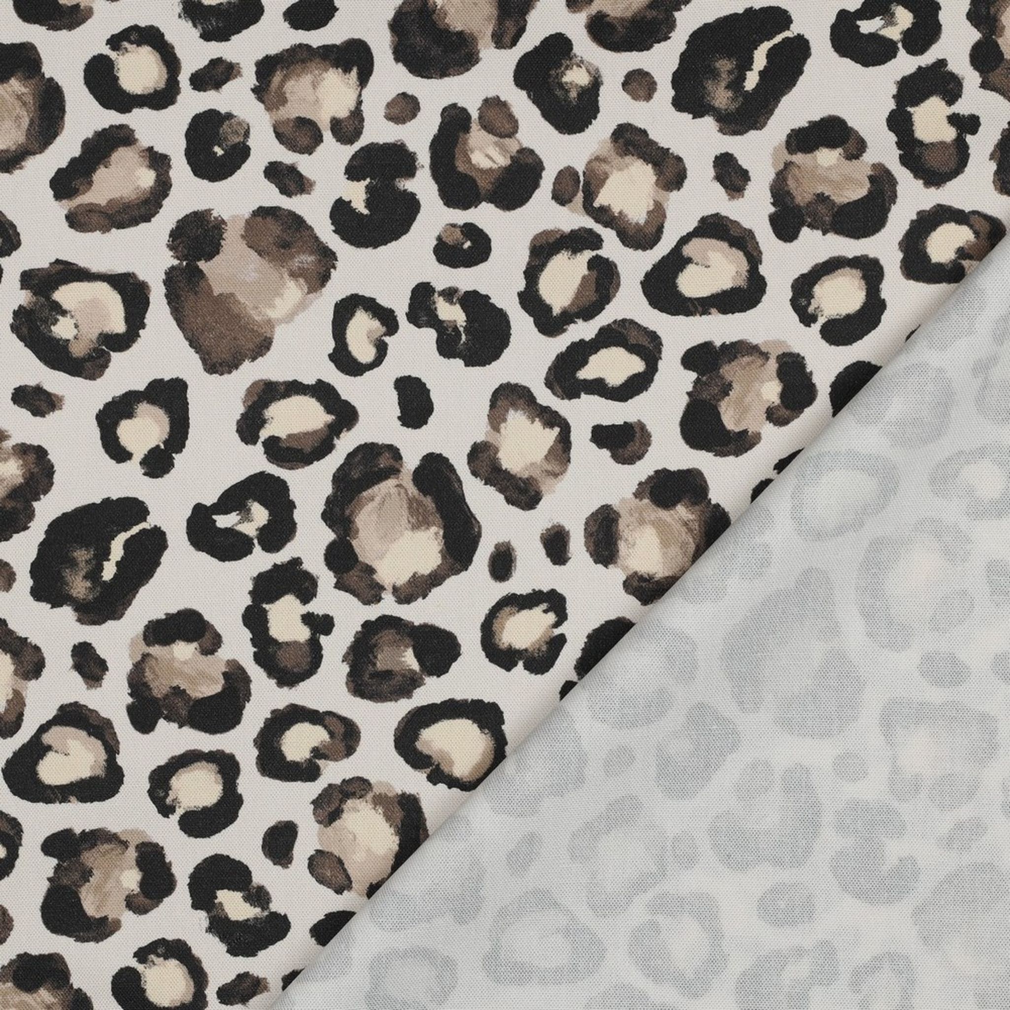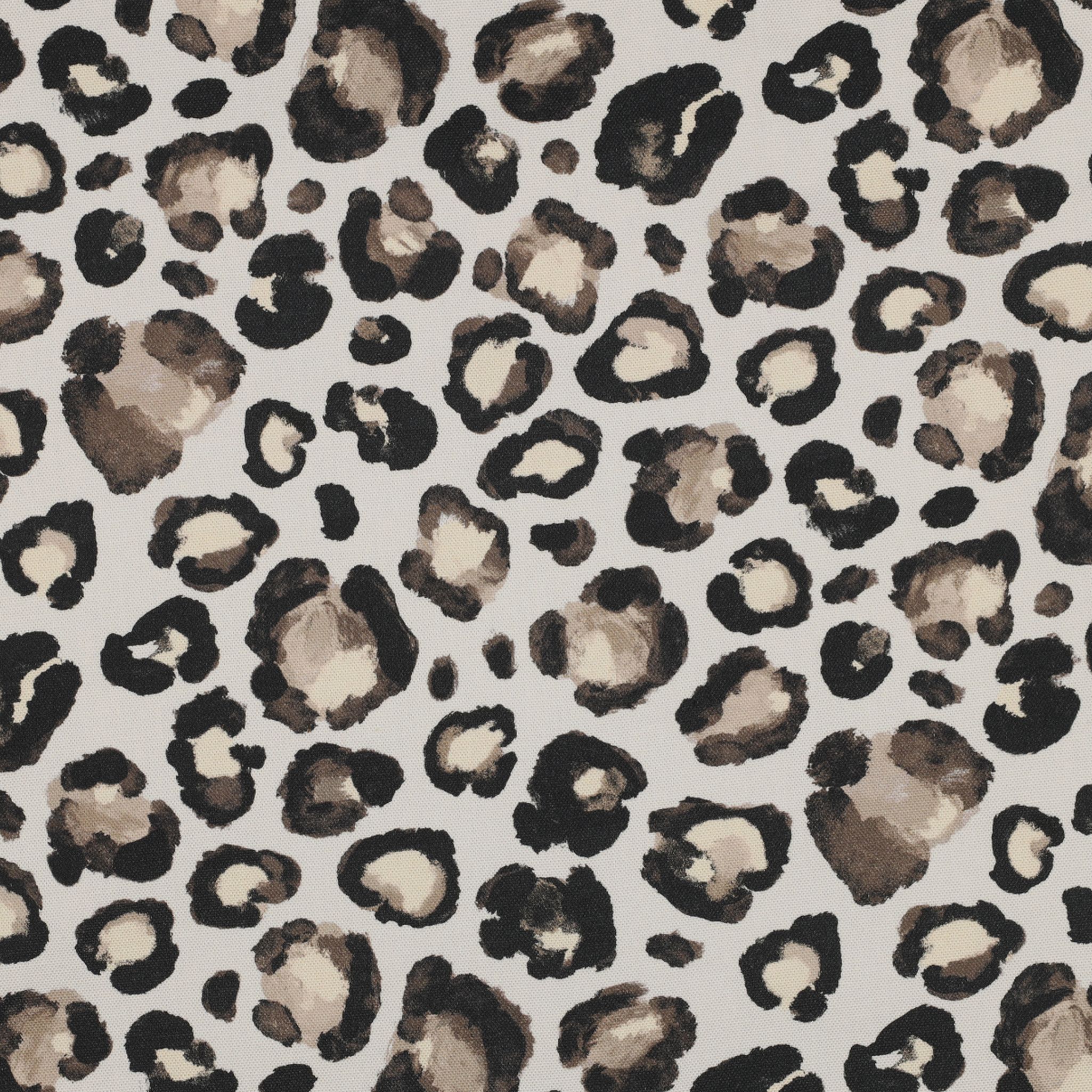 Zeitloses Animal-Print-Design: Das Leopardenmuster ist detailreich gedruckt und setzt auf dem hellen Untergrund einen starken Akzent. Dank der hochwertigen Druckqualität bleiben die Kontraste scharf, was den Stoff zur perfekten Leinwand für modische Statements im Interior- oder Fashion-Bereich macht.