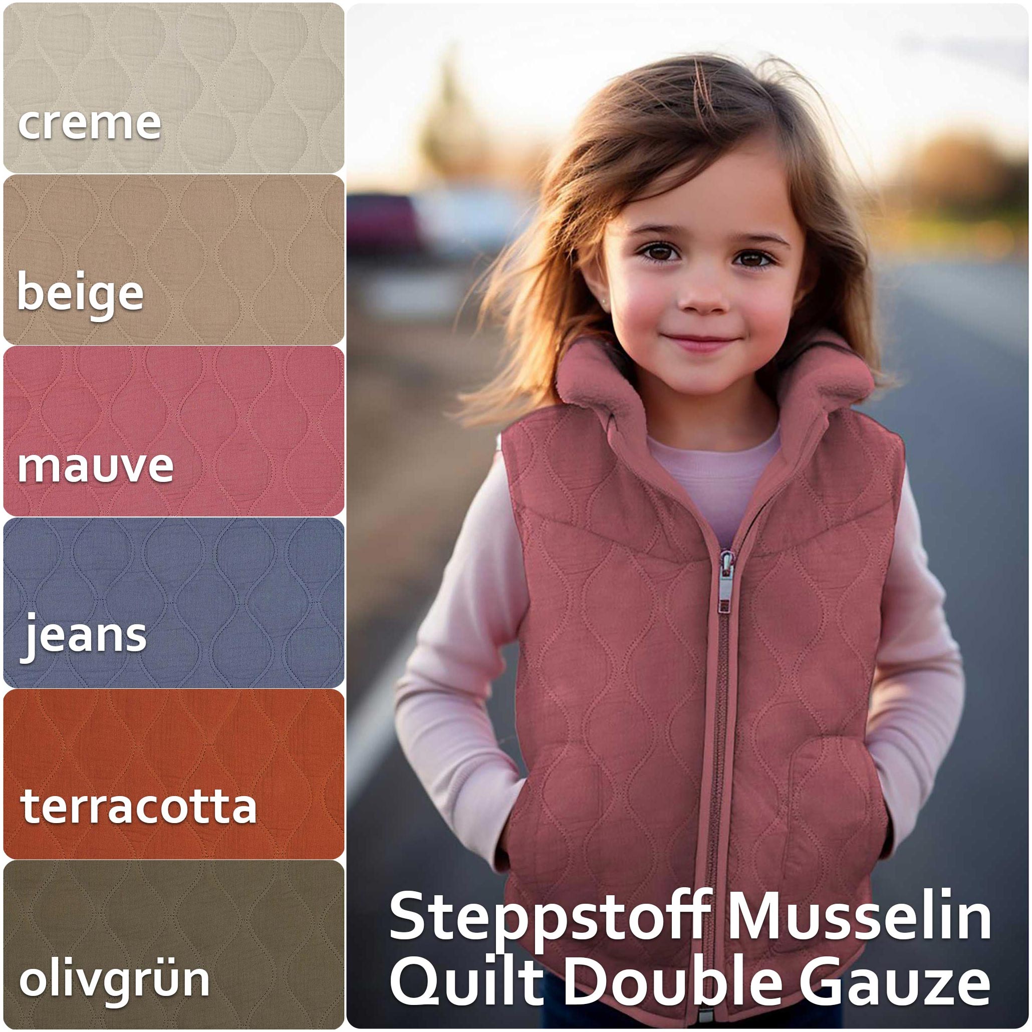 Steppstoff Musselin Quilt Double Gauze Stepper ab 0,5m beidseitig gesteppt wattiert Oeko-Tex
