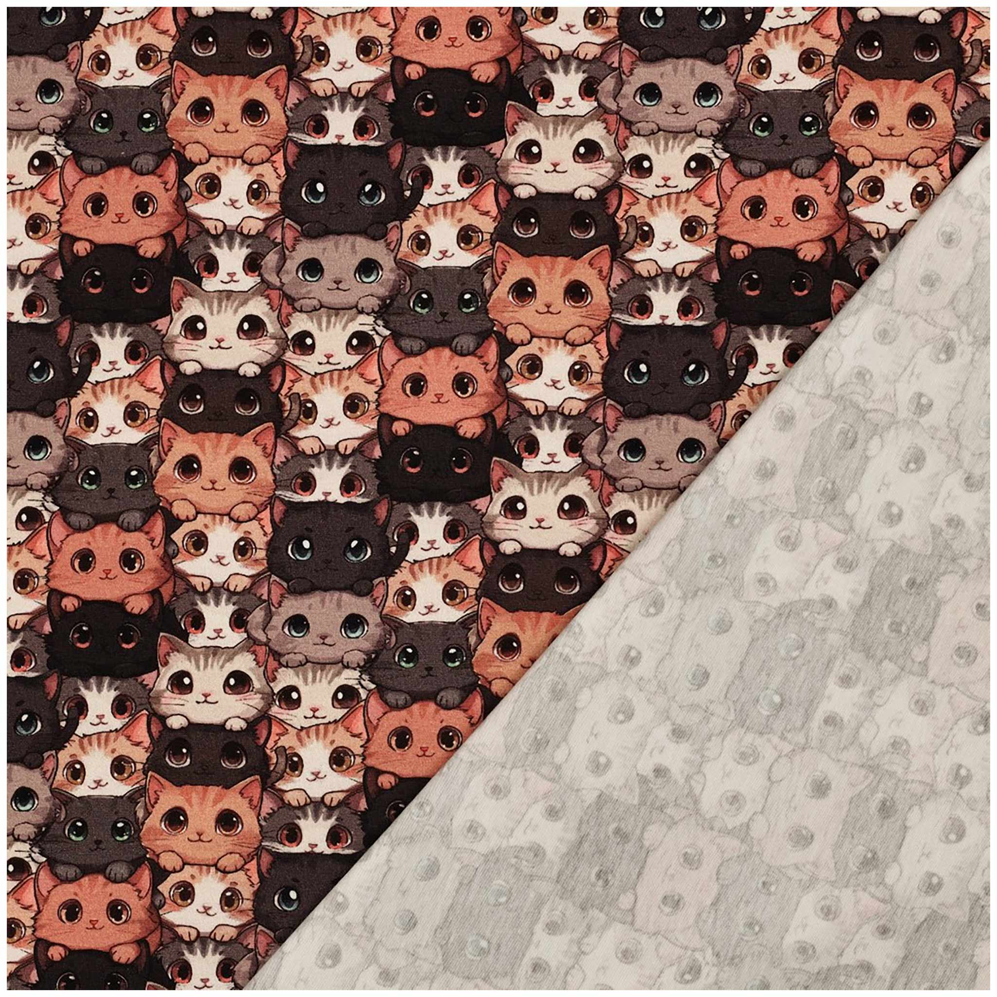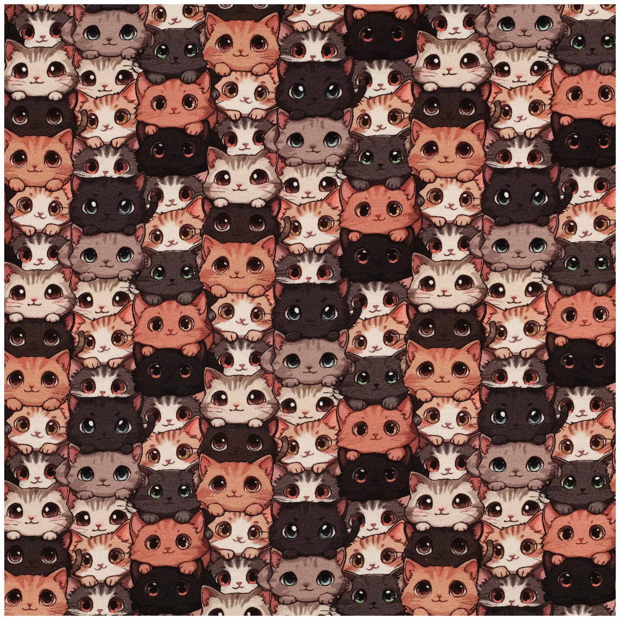 Schau mal, diese kleinen Kätzchen! Jedes Gesicht ist ein bisschen anders, jeder Blick neugierig, charmant und voller Persönlichkeit. Der Jersey fühlt sich angenehm weich an, ist elastisch und liegt wunderbar in der Hand. Der Druck ist lebendig und detailreich – man kann die kleinen Kätzchen fast zum Leben erwachen sehen. Ein Stoff, der sofort Lust aufs Nähen macht und sich hervorragend für Kinderkleidung, liebevolle Accessoires oder kleine Hingucker im Zimmer eignet. Mit ihm wird jedes Projekt ein kleines Stück Freude.