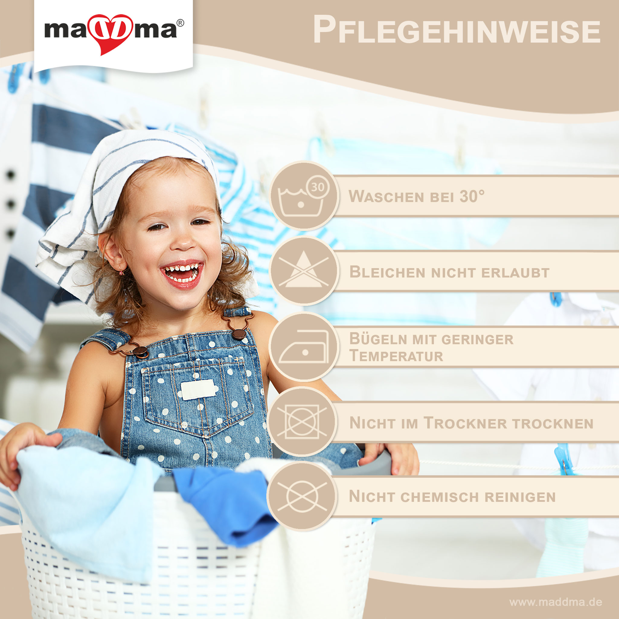 - Pflegeleicht: bei 30 °C waschen, auf Stufe 1 bügeln, liegend trocknen, nicht bleichen, nicht chemisch reinigen – so behält der Stoff lange seine Qualität.