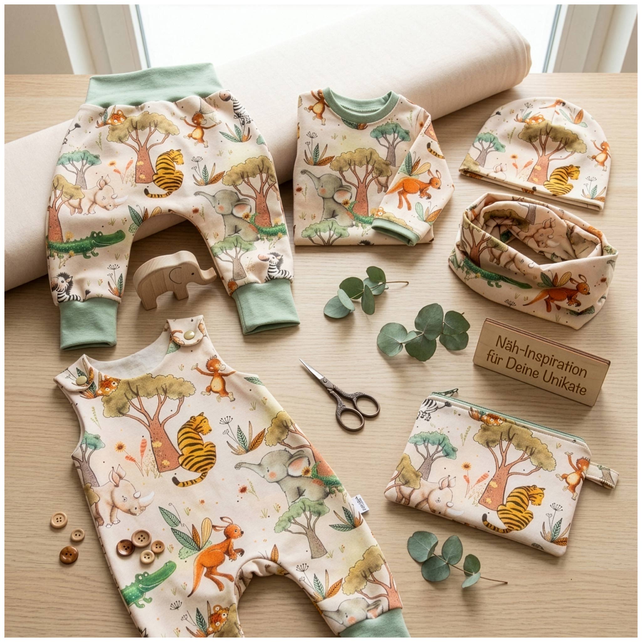 Aus diesem Stoff landen oft schlichte Langarmshirts oder bequeme Pumphosen unter der Nähmaschine, die jede Expedition im Garten mitmachen. Er funktioniert hervorragend für Schlafanzüge, die sich nachts weich an den Körper schmiegen, oder für leichte Übergangsjacken, die einfach über einem Pullover getragen werden. Wer gezielte Akzente setzen will, kombiniert die Safari-Tiere mit Bündchen in passender Farbnuance für einen stimmigen Gesamtlook. So entstehen Stücke, die nicht nur eine Saison überstehen, sondern durch ihre zeitlose Ästhetik und materielle Beständigkeit überzeugen.