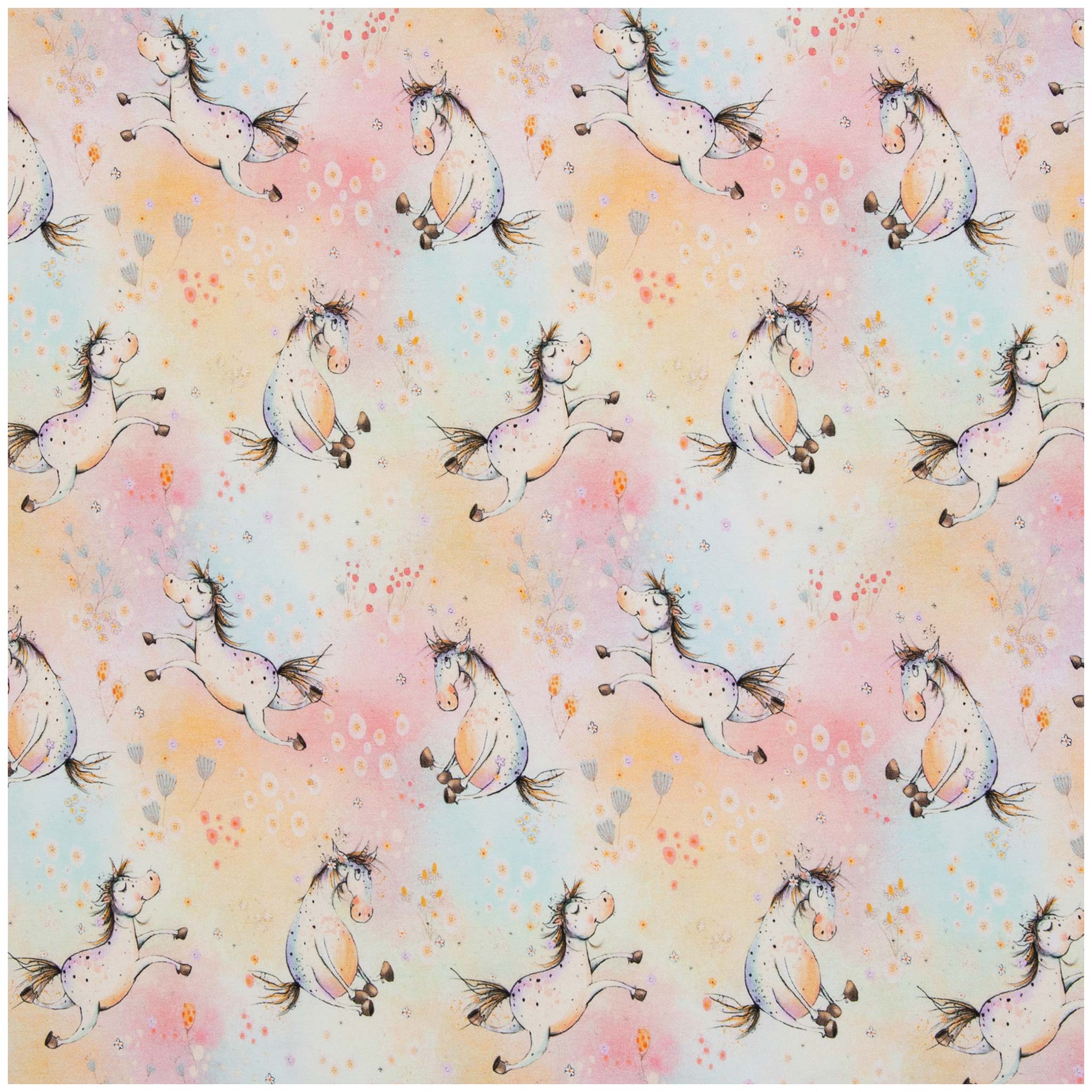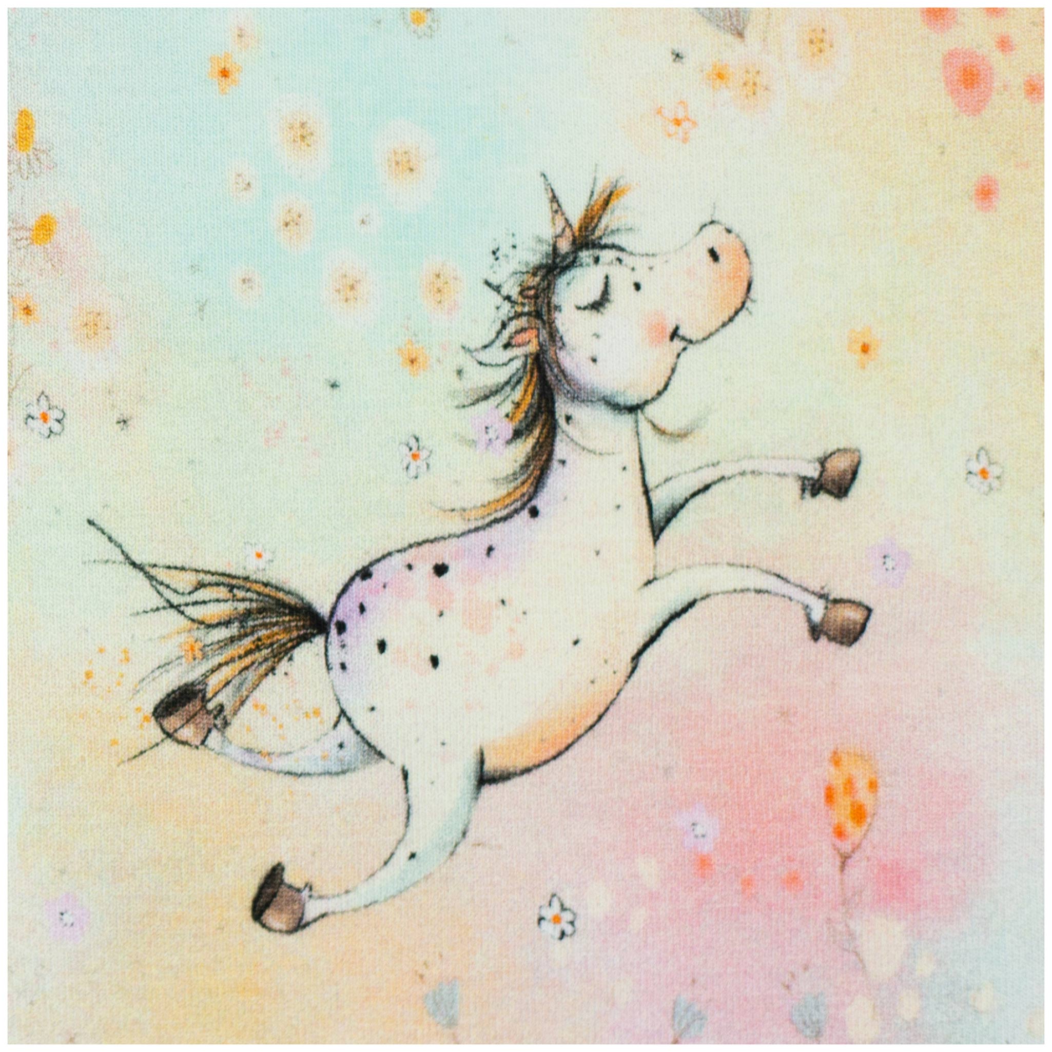 Swafing Nils Baumwolljersey Einhorn – Pastell-Regenbogen 1/2 Meterware für Baby-Shirts, Pumphosen & Beanies – Oeko-Tex Klasse 1