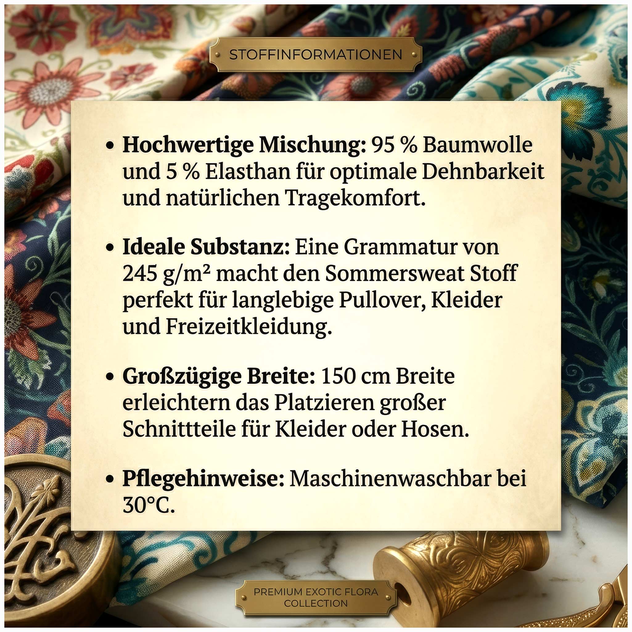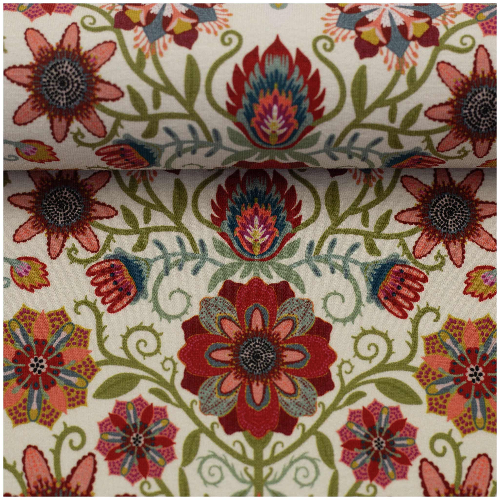 - Exklusives Bienvenido Colorido Design: Das kunstvolle Muster Tropical Flowers besticht durch symmetrische Mandalas und leuchtende, tropische Farben auf Premium-Untergrund. Jedes Detail der floralen Ornamente verleiht selbstgenähter Kleidung eine individuelle Designer-Note, die im Alltag ein modisches Statement setzt und die kreative Handschrift von Bienvenido Colorido widerspiegelt.