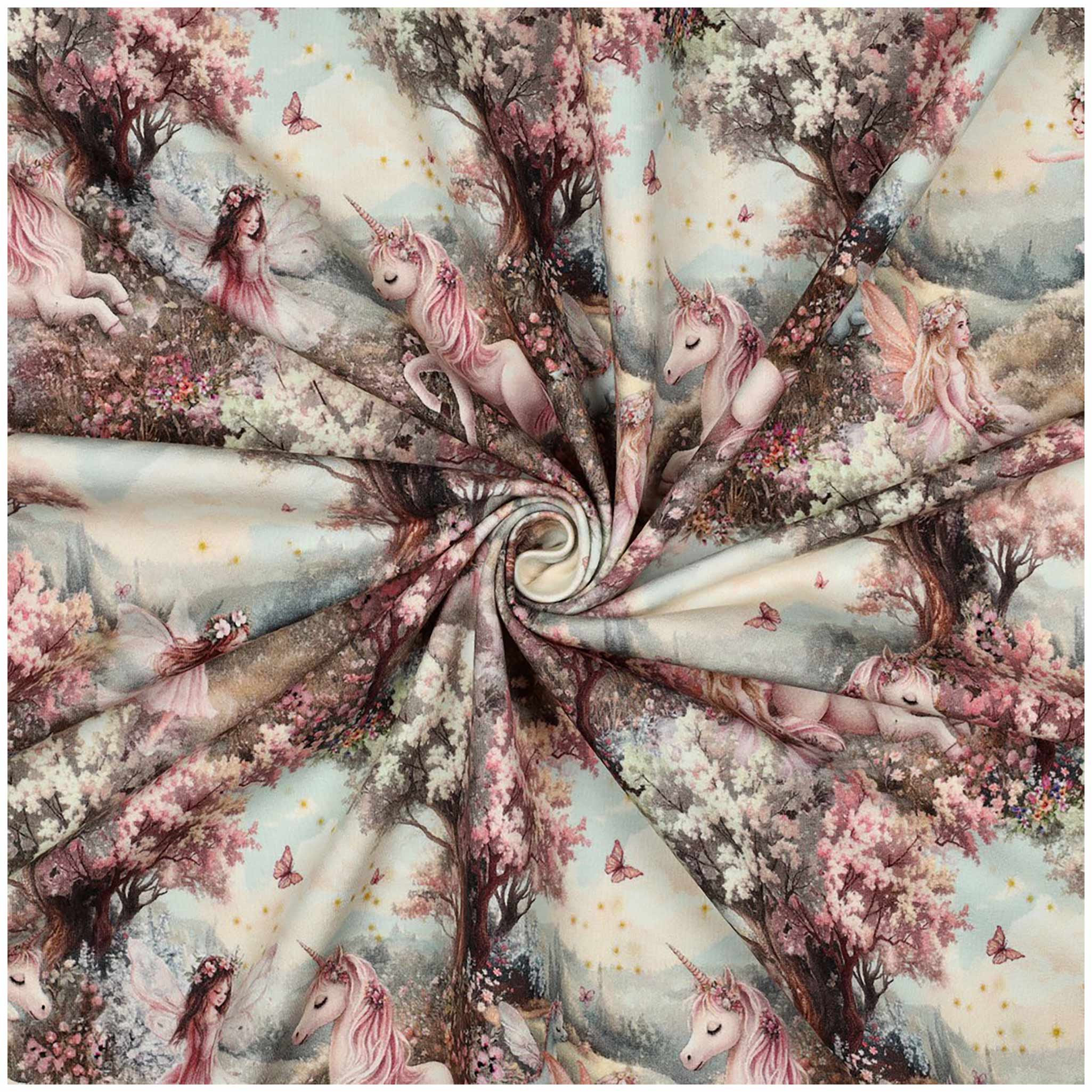 Mit dem Märchenland Sweat entstehen Kleidungsstücke und Accessoires, die Kinderherzen höherschlagen lassen. Lass Einhörner galoppieren, Feen tanzen und kleine Träume Wirklichkeit werden – einfach los nähen und kleine Lieblingsstücke voller Fantasie erschaffen.