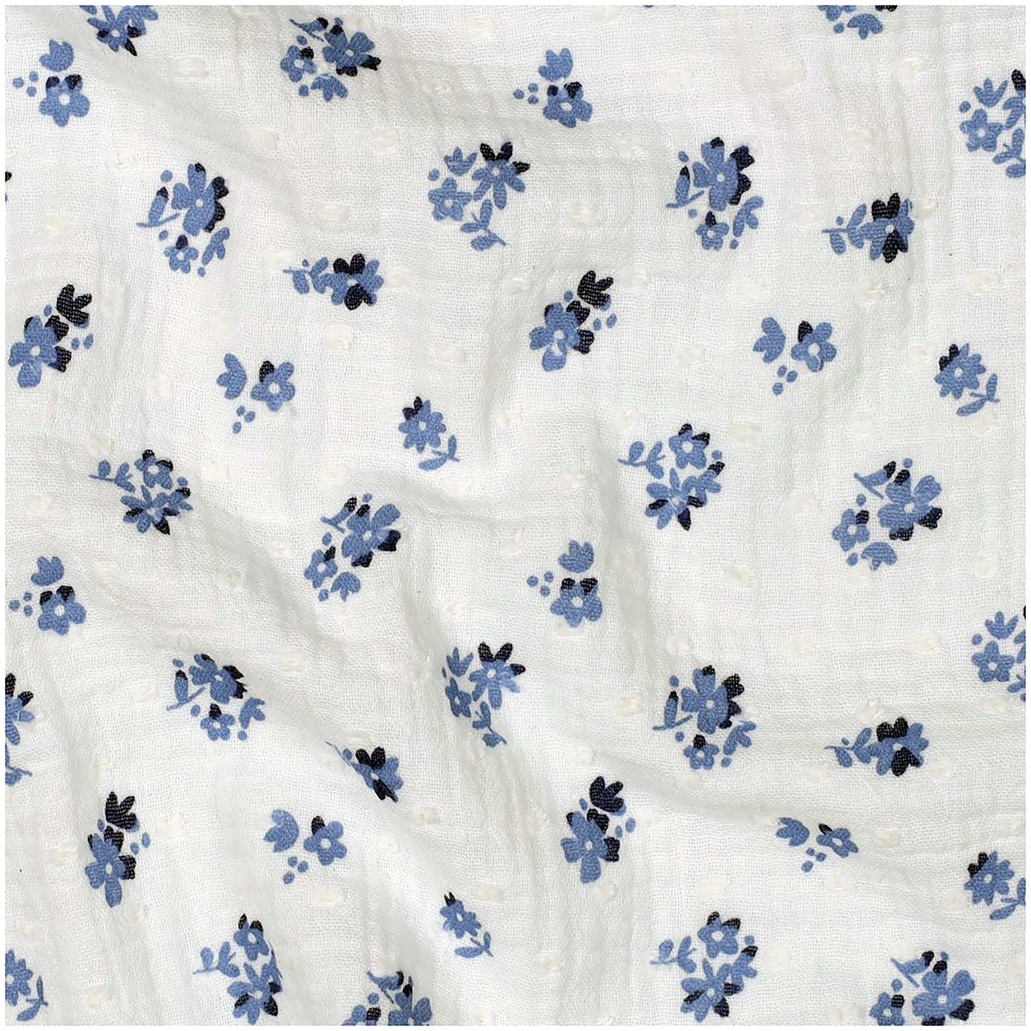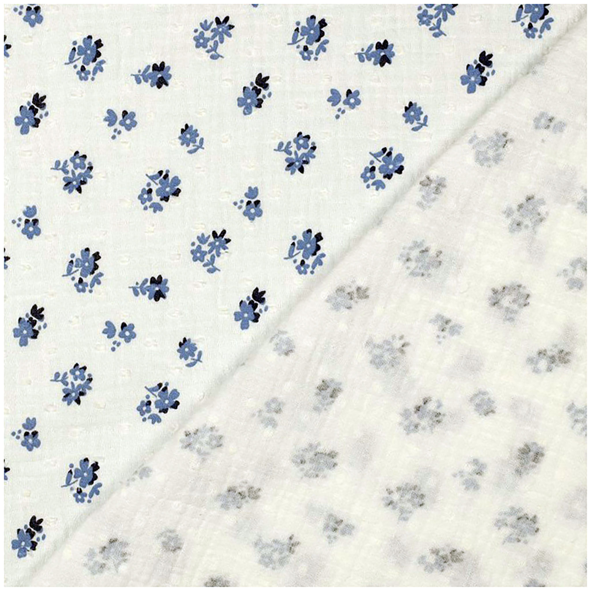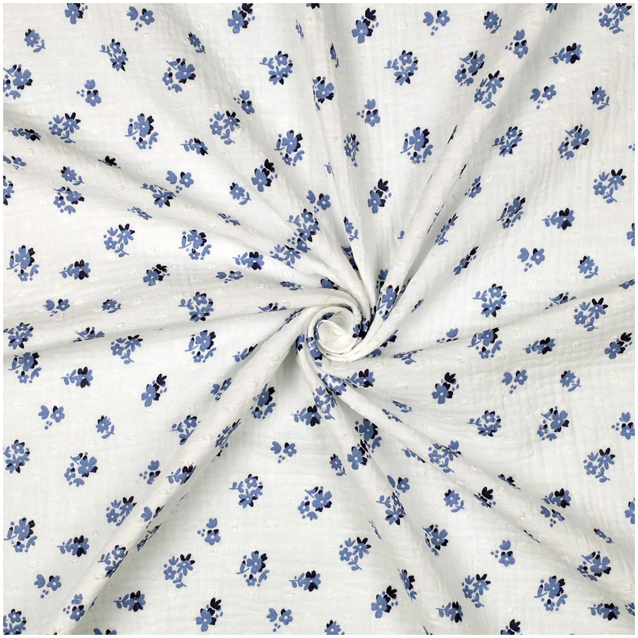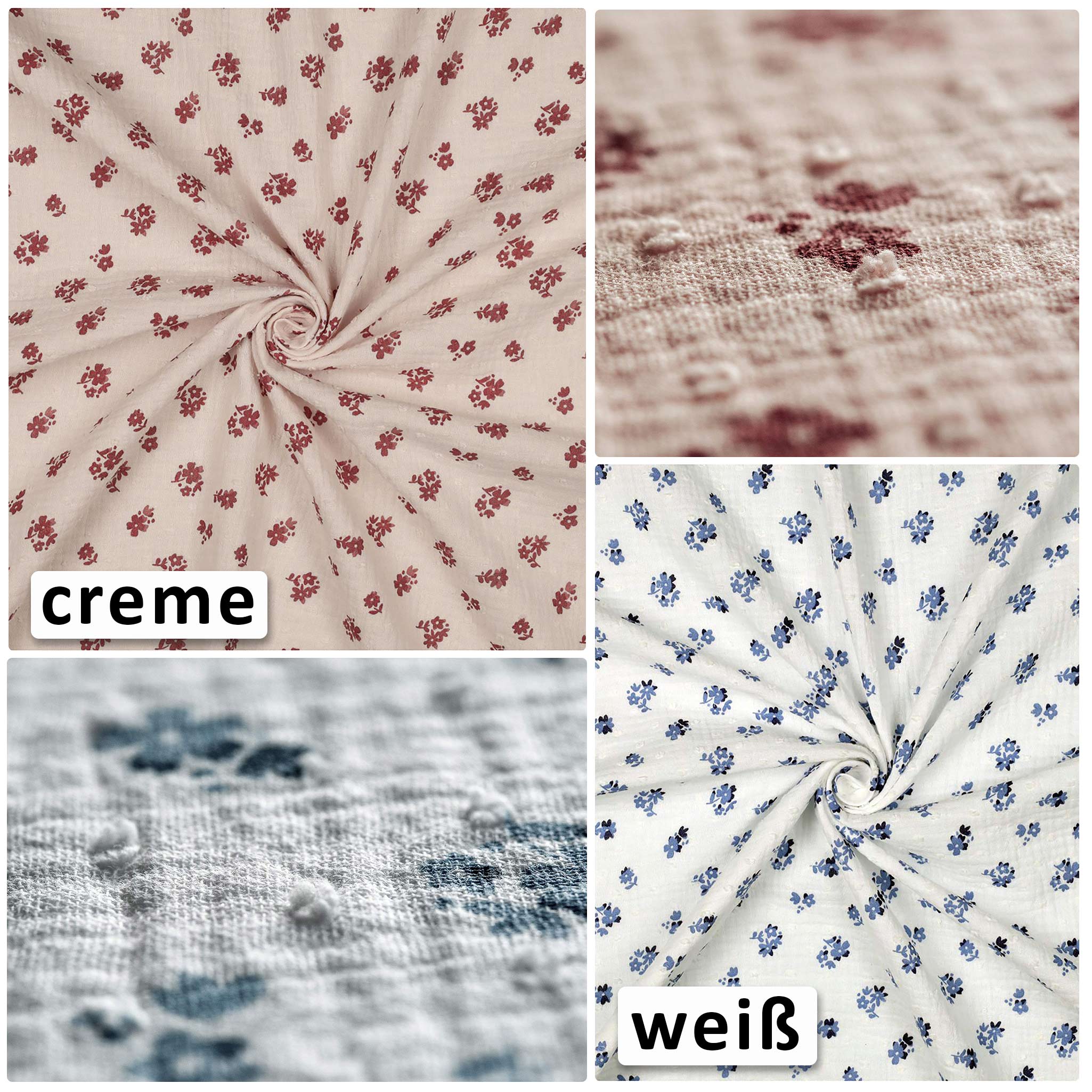 Musselin Dobby Blüten Double Gauze ab 1 m x 1,35 m Blumen Baumwollstoff Meterware