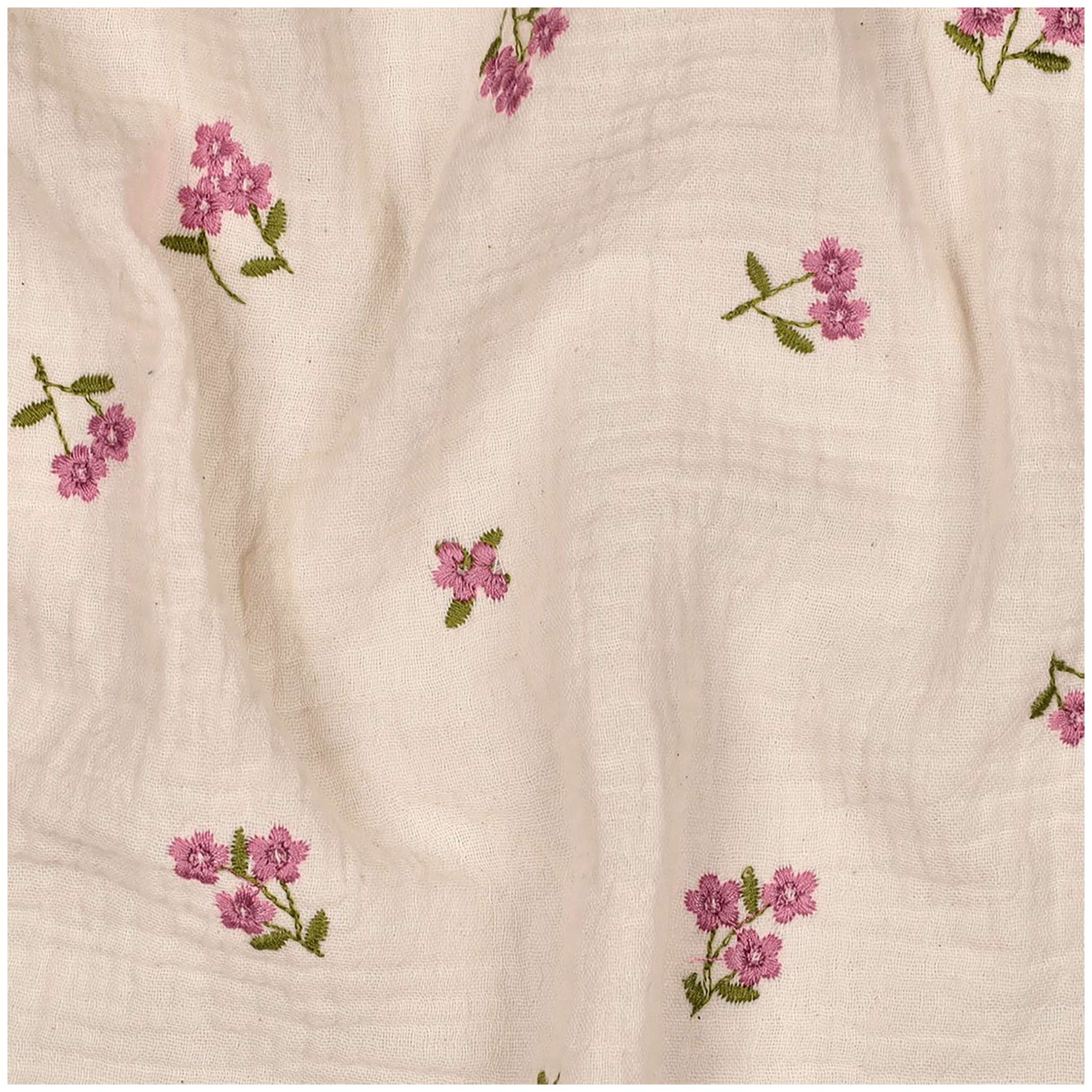 Musselin mit Blumen bestickt Uni Double Gauze ab 0,5m x 1,30m Baumwolle Oeko-Tex Meterware Sommerstoff