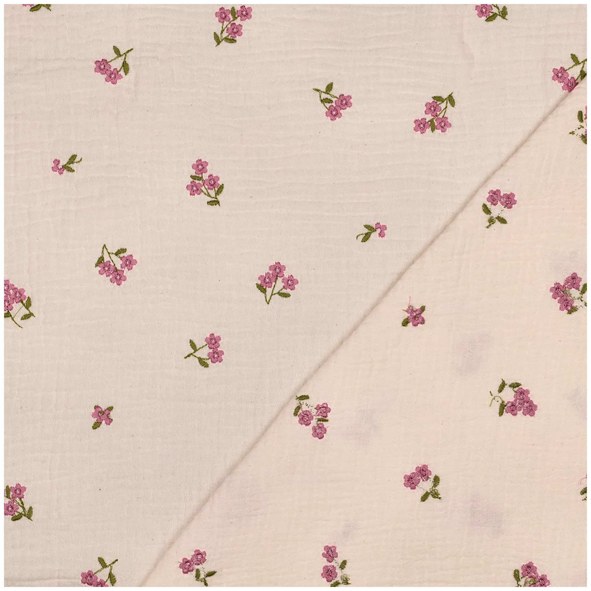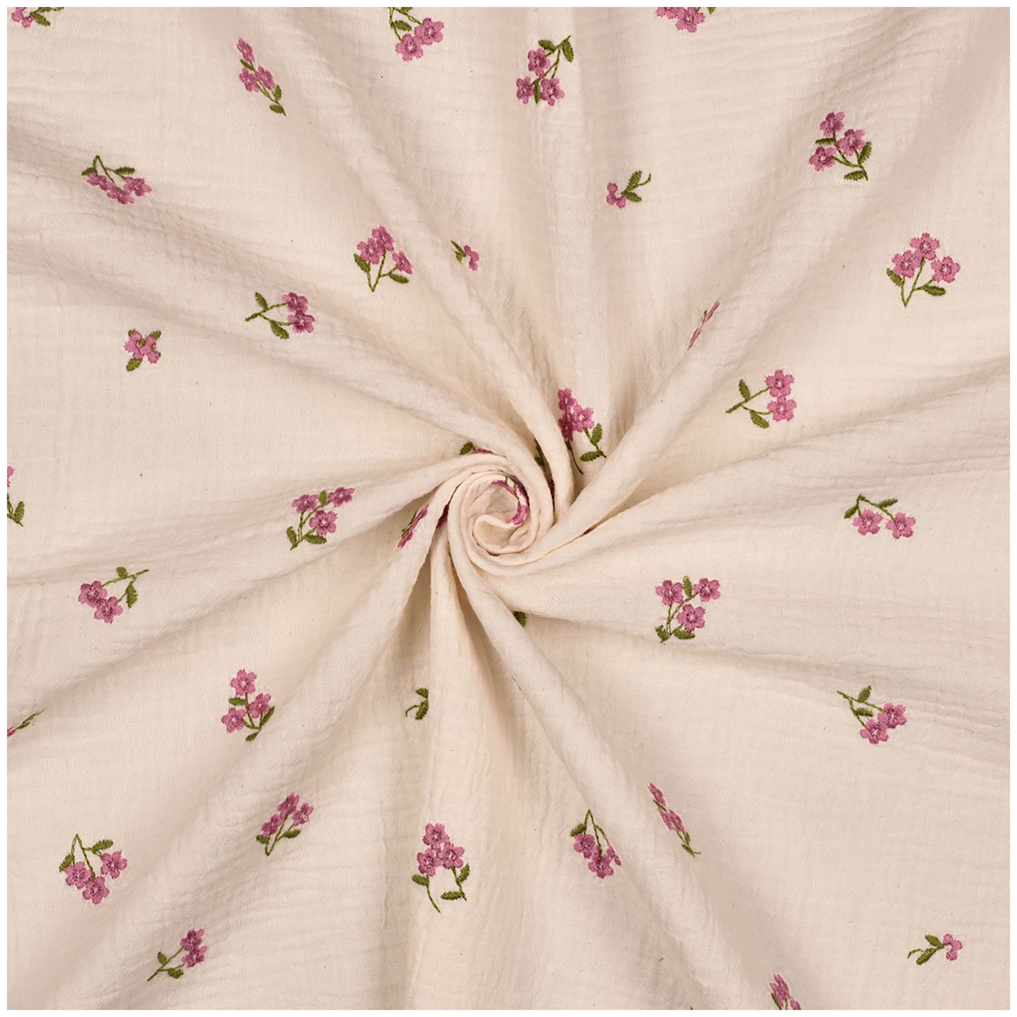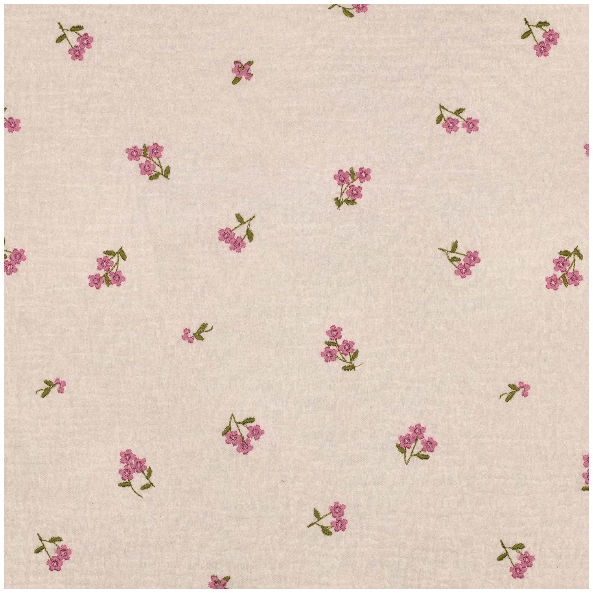 Zart wie eine Sommerbrise – so fühlt sich dieser hochwertige Musselin auf deiner Haut an. Die filigrane Blumenbestickung verleiht dem Stoff eine edle, verspielte Note. Das Besondere liegt in der Struktur: Durch ein spezielles Webverfahren werden zwei Lagen Mull punktuell miteinander verbunden.