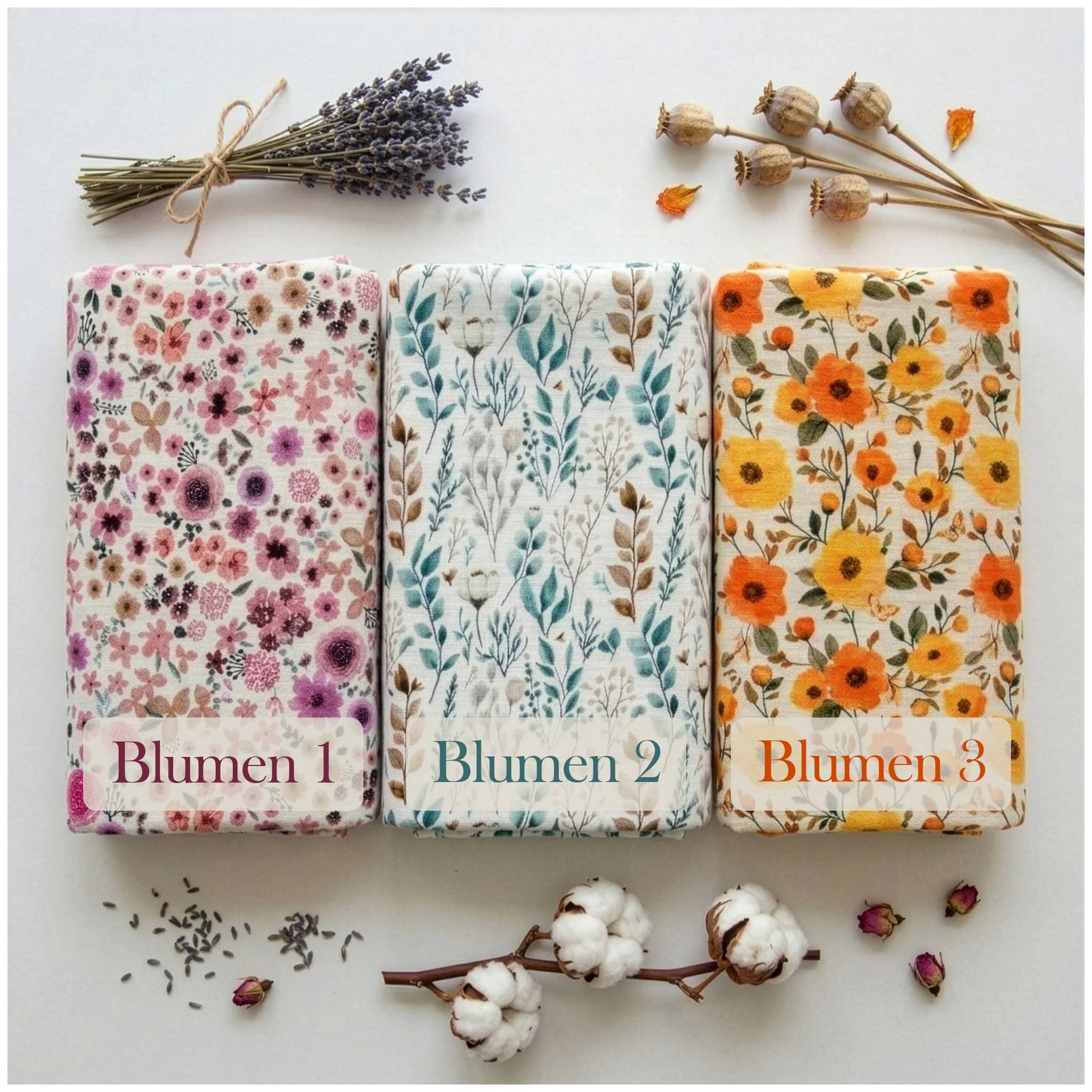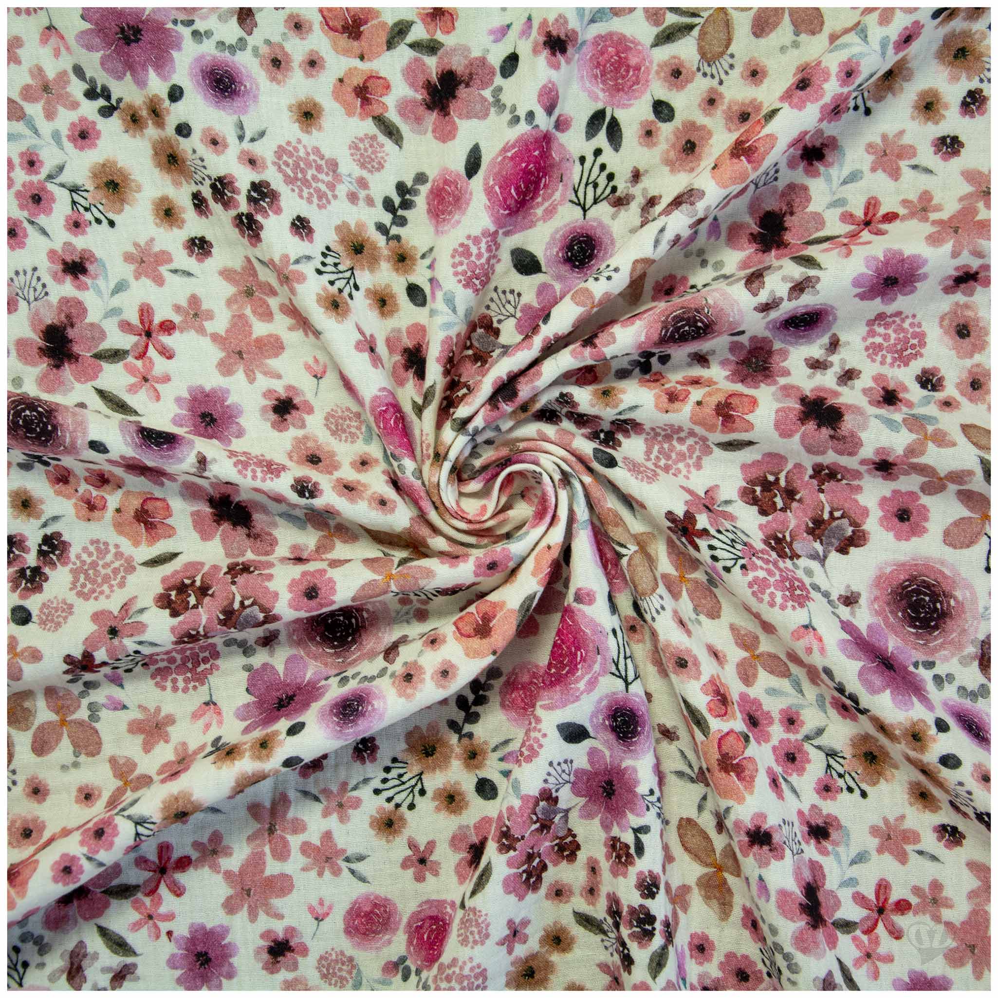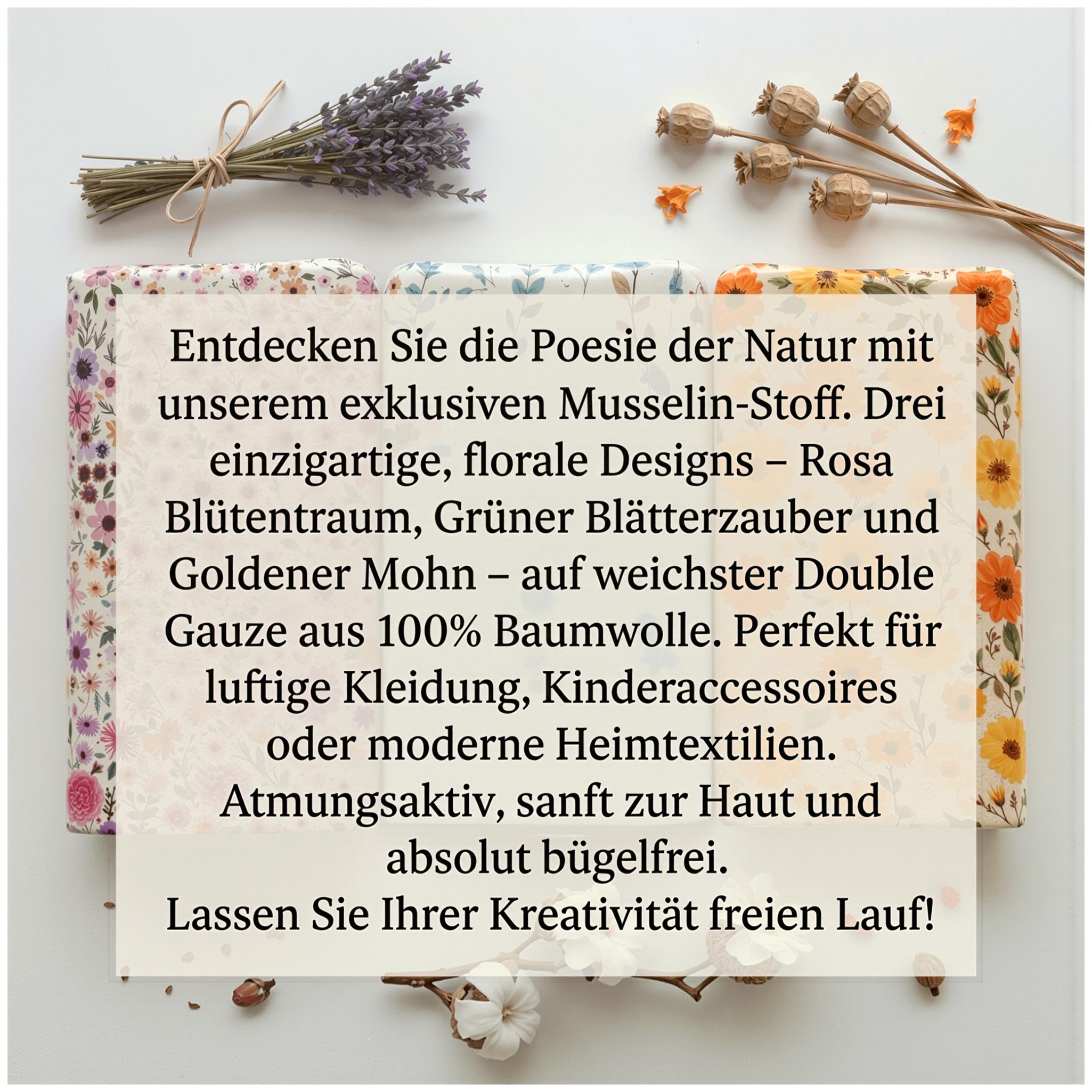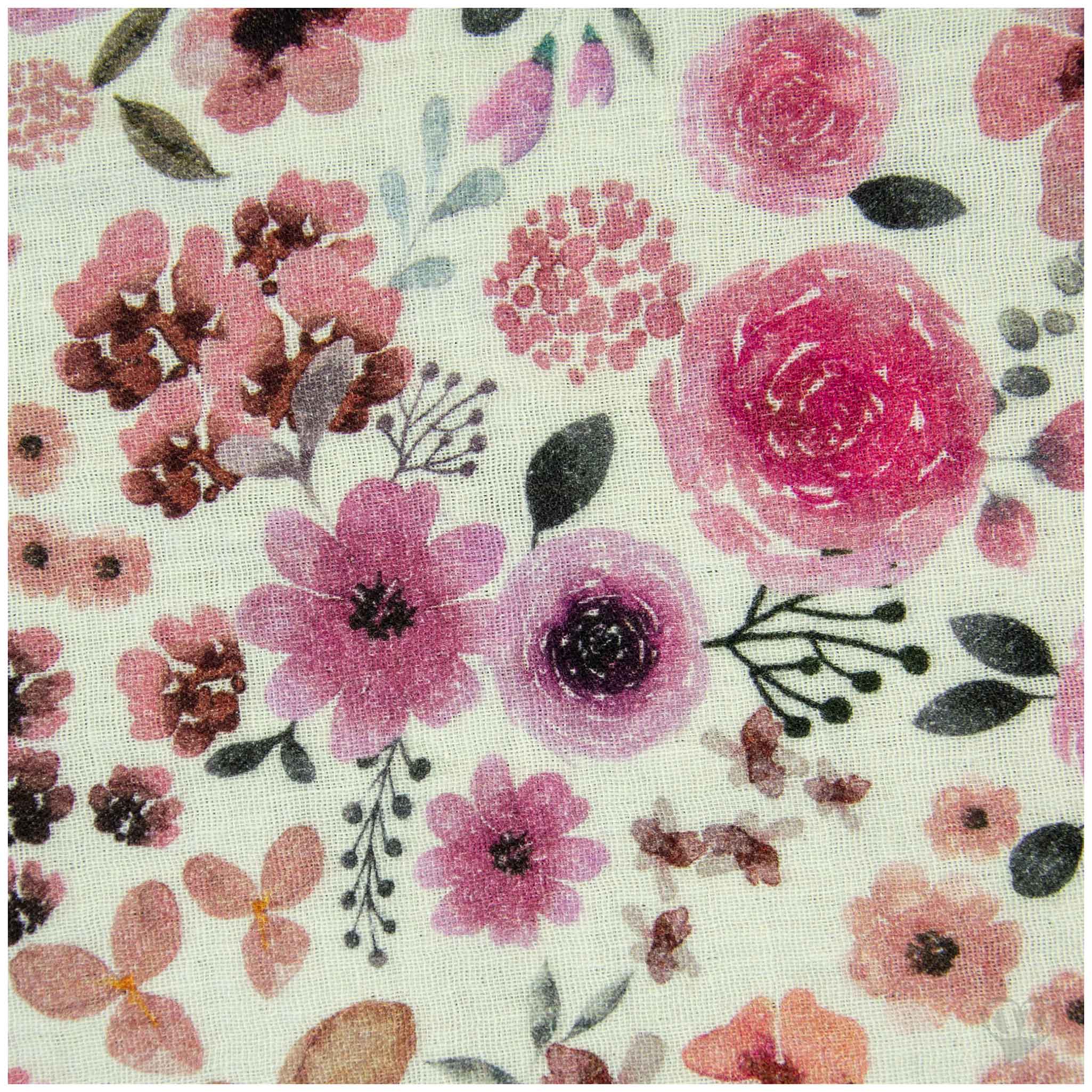 Musselin Stoff Flower – Double Gauze Baumwolle Oeko-Tex – 130 cm breit – Musselin 1/2 Meterware f. Kleidung, Baby & Sommermode