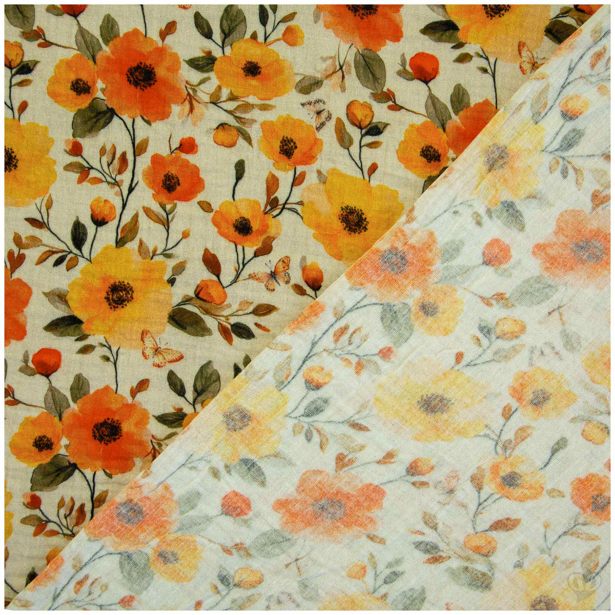 Musselin Stoff Flower – Double Gauze Baumwolle Oeko-Tex – 130 cm breit – Musselin 1/2 Meterware f. Kleidung, Baby & Sommermode