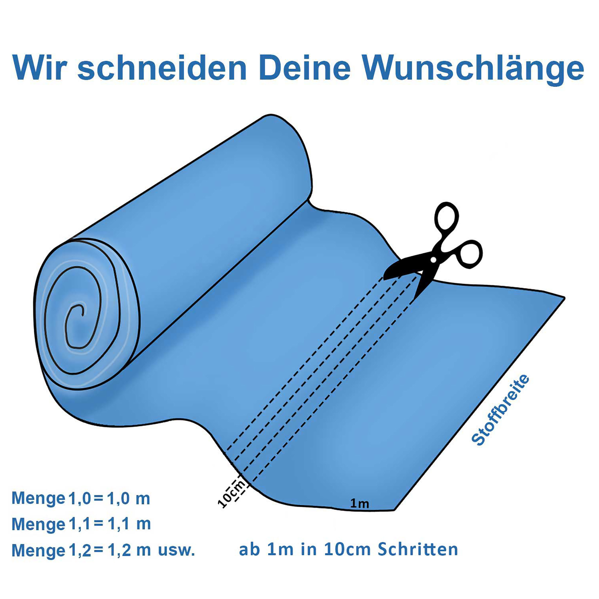 Wir möchten, dass Du mit Deinem Einkauf rundum zufrieden bist. Daher tun wir unser Bestes, um unsere Produkte realistisch darzustellen. Aufgrund unterschiedlicher Monitoreinstellungen kann es dennoch zu leichten Farbabweichungen kommen. Bei Bestellungen von Meterware bemühen wir uns um eine Lieferung am Stück. Sollte dies einmal nicht möglich sein, kontaktieren wir Dich vorab. Abweichungen in der Länge beim Zuschnitt um +/- 5% sind dabei möglich.
