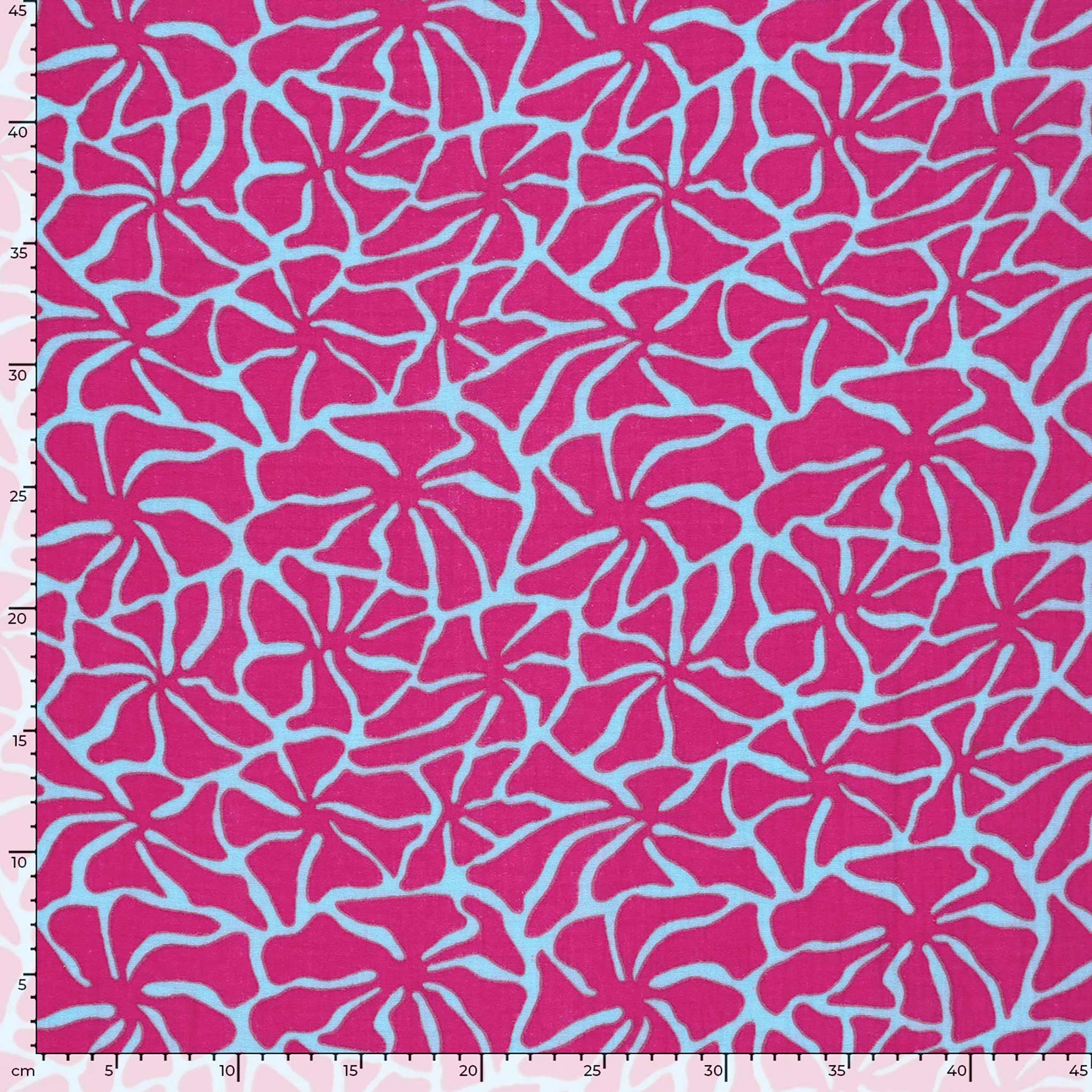 Pinke Lebensfreude mit feiner Zeichnung: Auf einem kräftigen, satten Pink tanzen Blüten, die wie mit einem feinen Stift in Blau-Violett skizziert wirken. Diese moderne Optik wird durch die leichte Grammatur von 135 g/m² perfekt ergänzt – der Stoff hat genau das richtige Gewicht, um sanft zu fließen und dennoch blickdicht genug für deine Lieblingsstücke zu sein. Die typische Crinkle-Struktur verleiht dem Ganzen ein lebendiges Volumen, das man einfach gerne berührt.