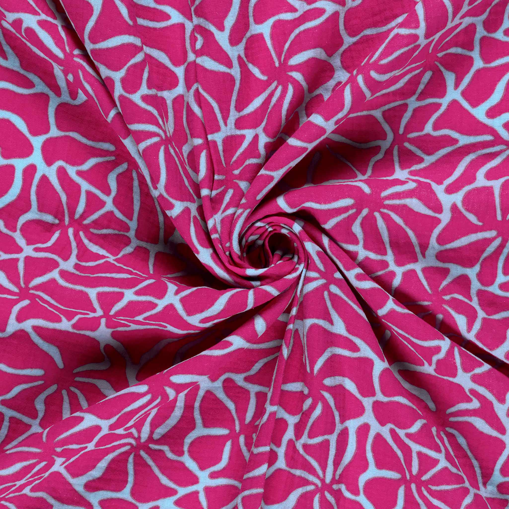 Musselin Stoff Pink 150cm Blumenmuster Double-Gauze Baumwolle Meterware OEKO-TEX für Babykleidung Sommer-Mode Blusen Kleider & Heimtextilien