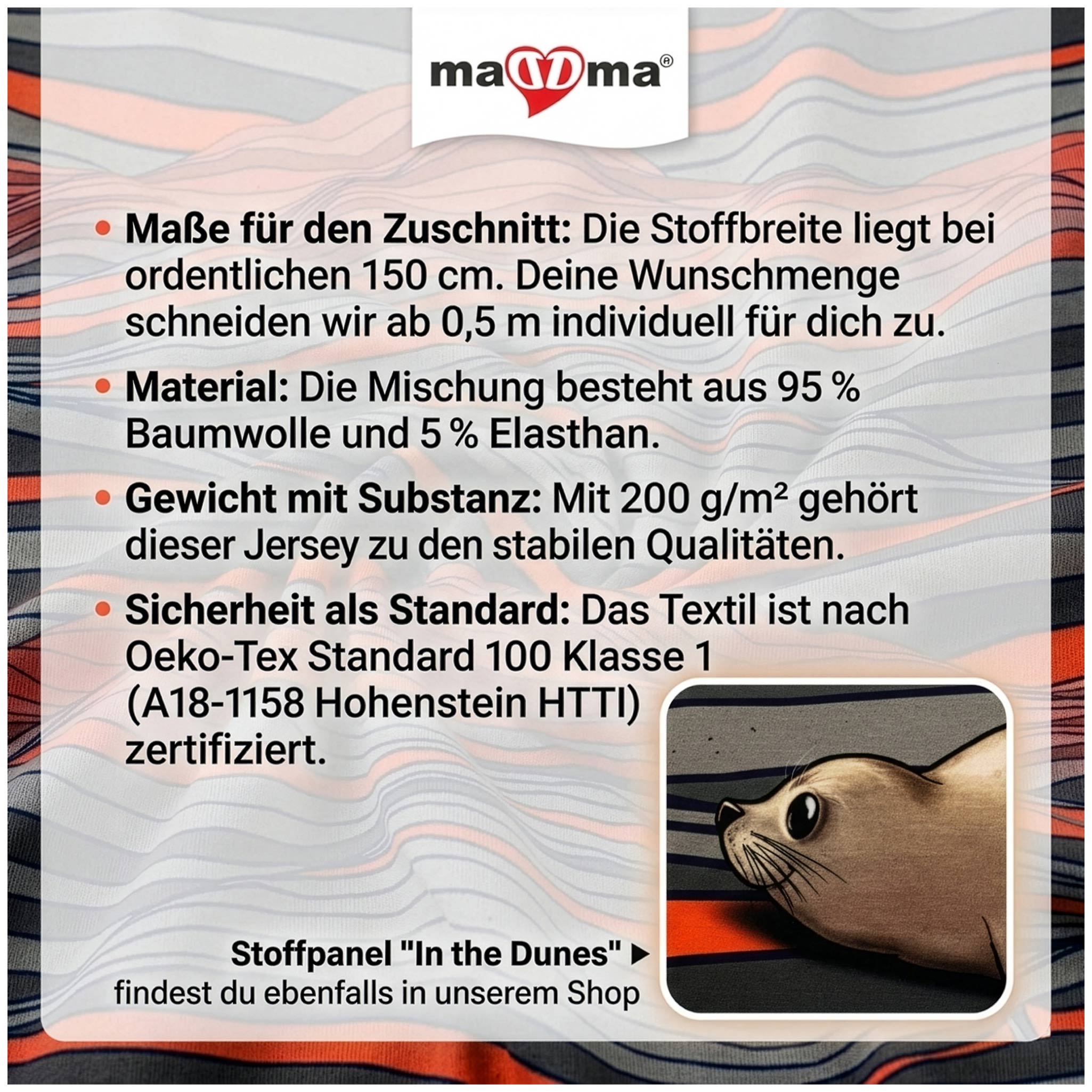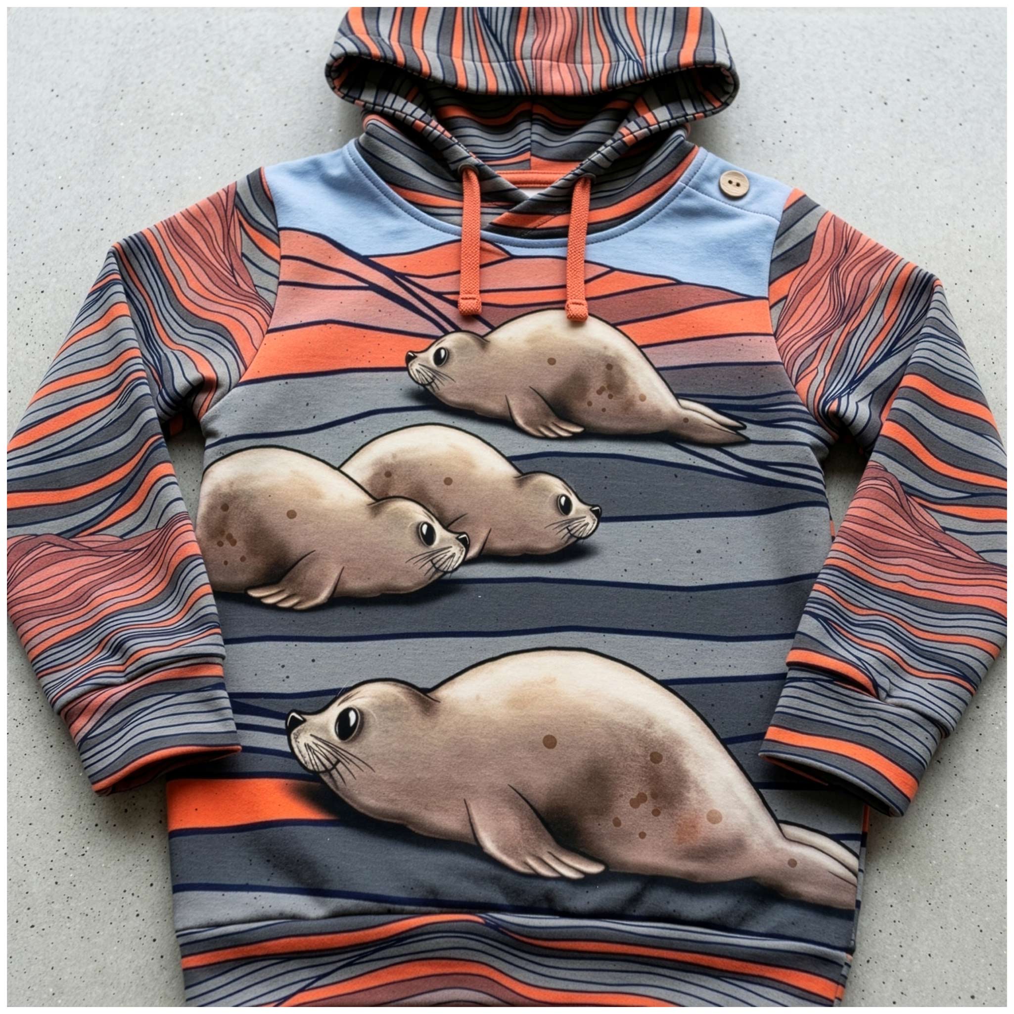 Gute Kleidung fängt immer beim richtigen Material an. Dieser Stoff ist die Basis für Teile, die nicht nach typischem Hobby-Projekt aussehen. Er vermittelt eine Wertigkeit, die man sonst nur in kleinen Boutiquen findet. Leg Dir Deine benötigte Menge jetzt in den Warenkorb und starte deine Planung. Wenn du ein erzählerisches Highlight setzen willst: Die passenden Robben-Motive aus der gleichen Serie ergänzen diese Grafik zu einer runden Geschichte.