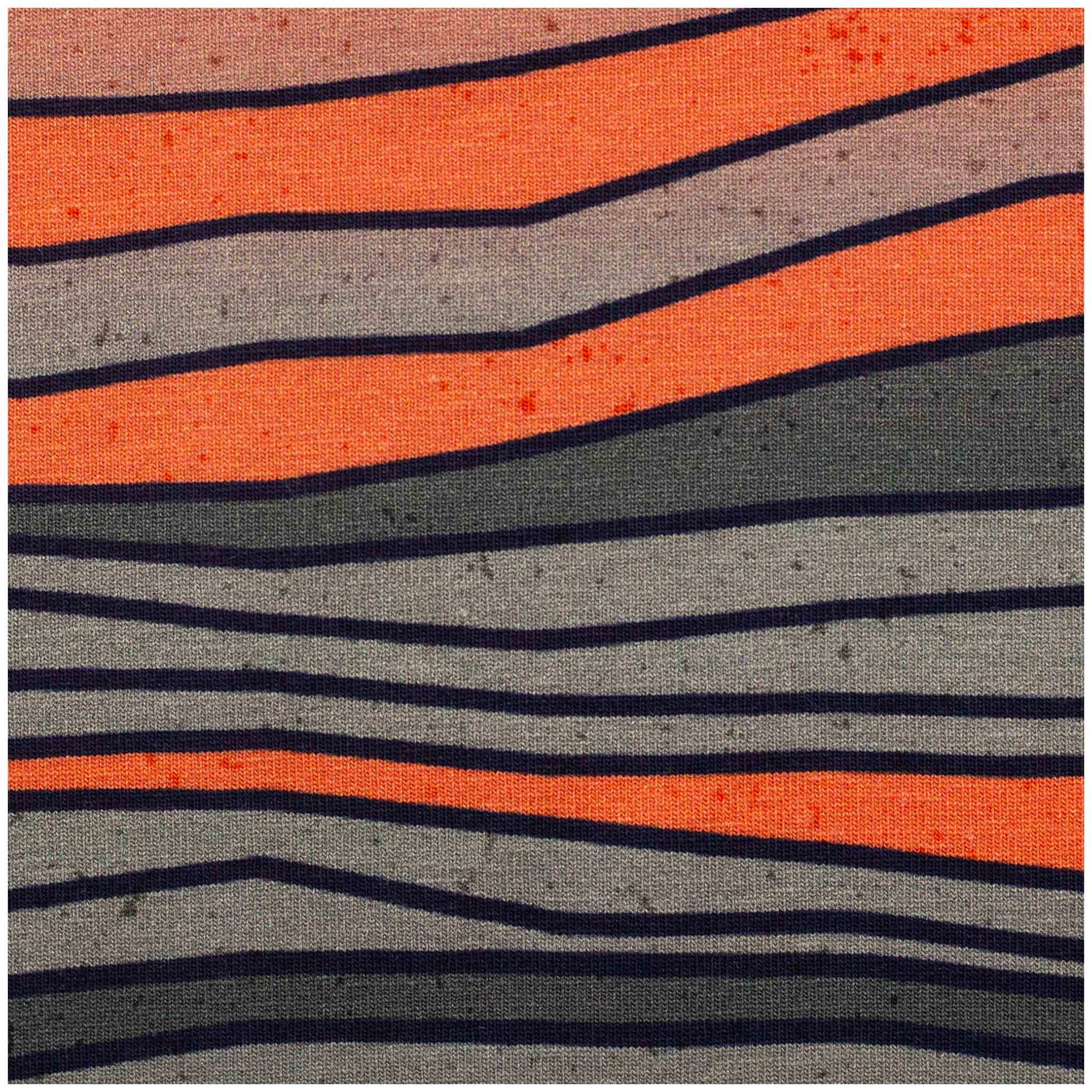 Oft wird dieser Jersey nur als Ergänzung für Ärmel oder Rückenteile gekauft. Aber dieser Stoff kann viel mehr. Ein schlichtes Kleid oder ein cleaner Hoodie komplett aus diesem Wellenmuster wirkt sehr erwachsen und hochwertig. Die Farben harmonieren perfekt mit dunkler Jeans oder hellen Erdtönen. Es ist der ideale Stoff für Projekte, die durch Understatement und Struktur überzeugen wollen. Er drängt sich optisch nicht auf, bleibt dem Betrachter aber durch seine Eigenständigkeit im Gedächtnis.