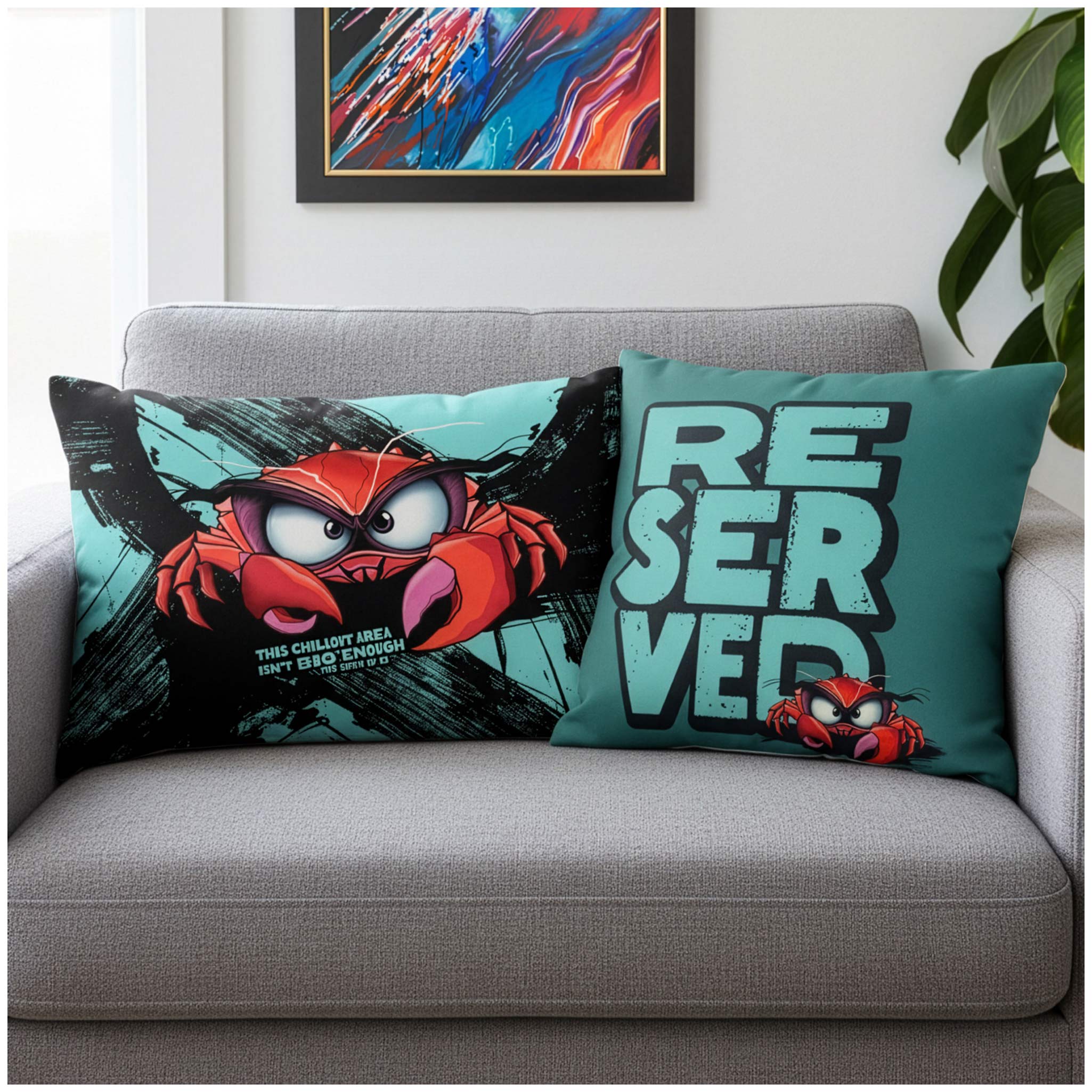 - Exklusives Design: Das humorvolle Krabben-Motiv kombiniert moderne Illustration mit sommerlicher Leichtigkeit – ein echter Designer-Hingucker für jedes Sofa.