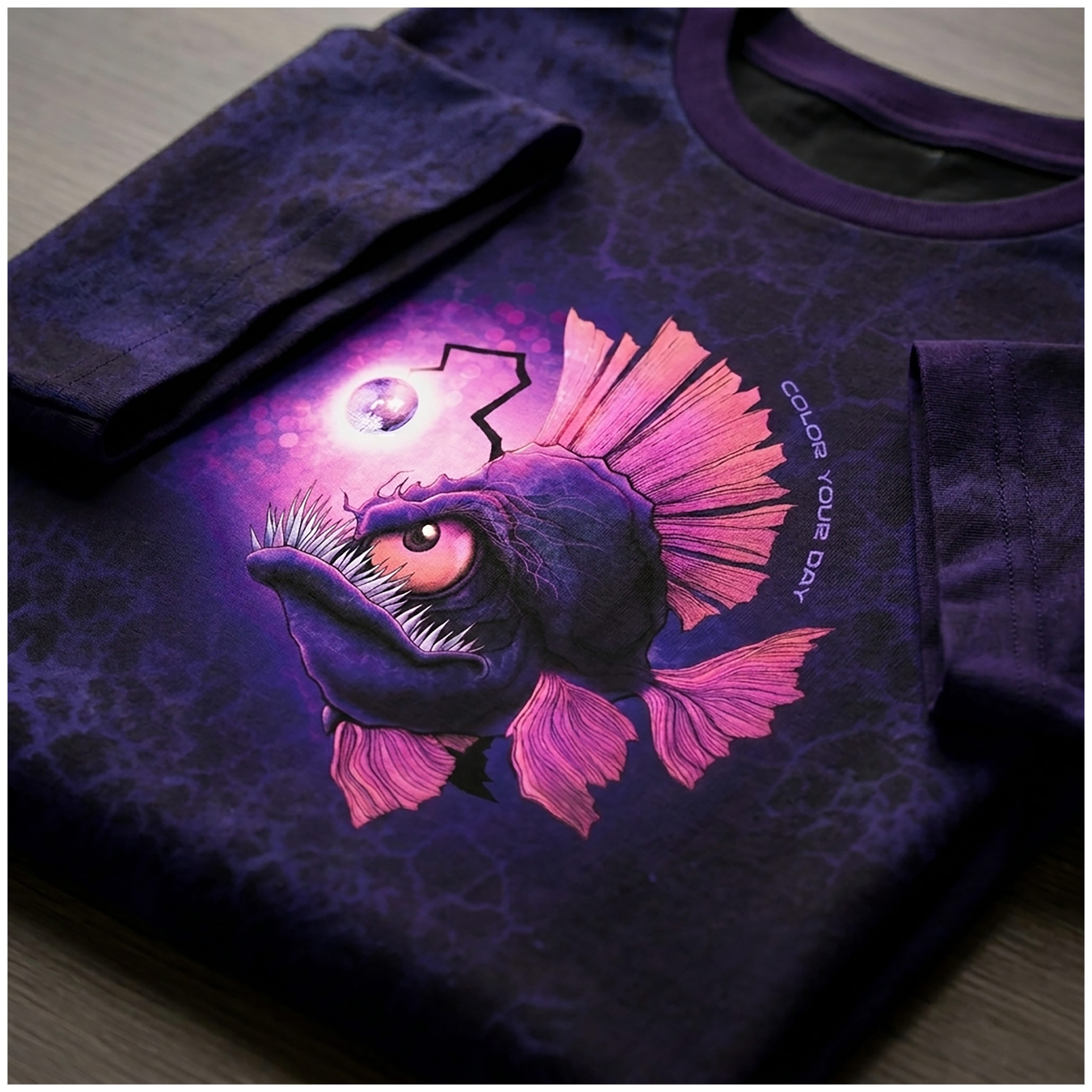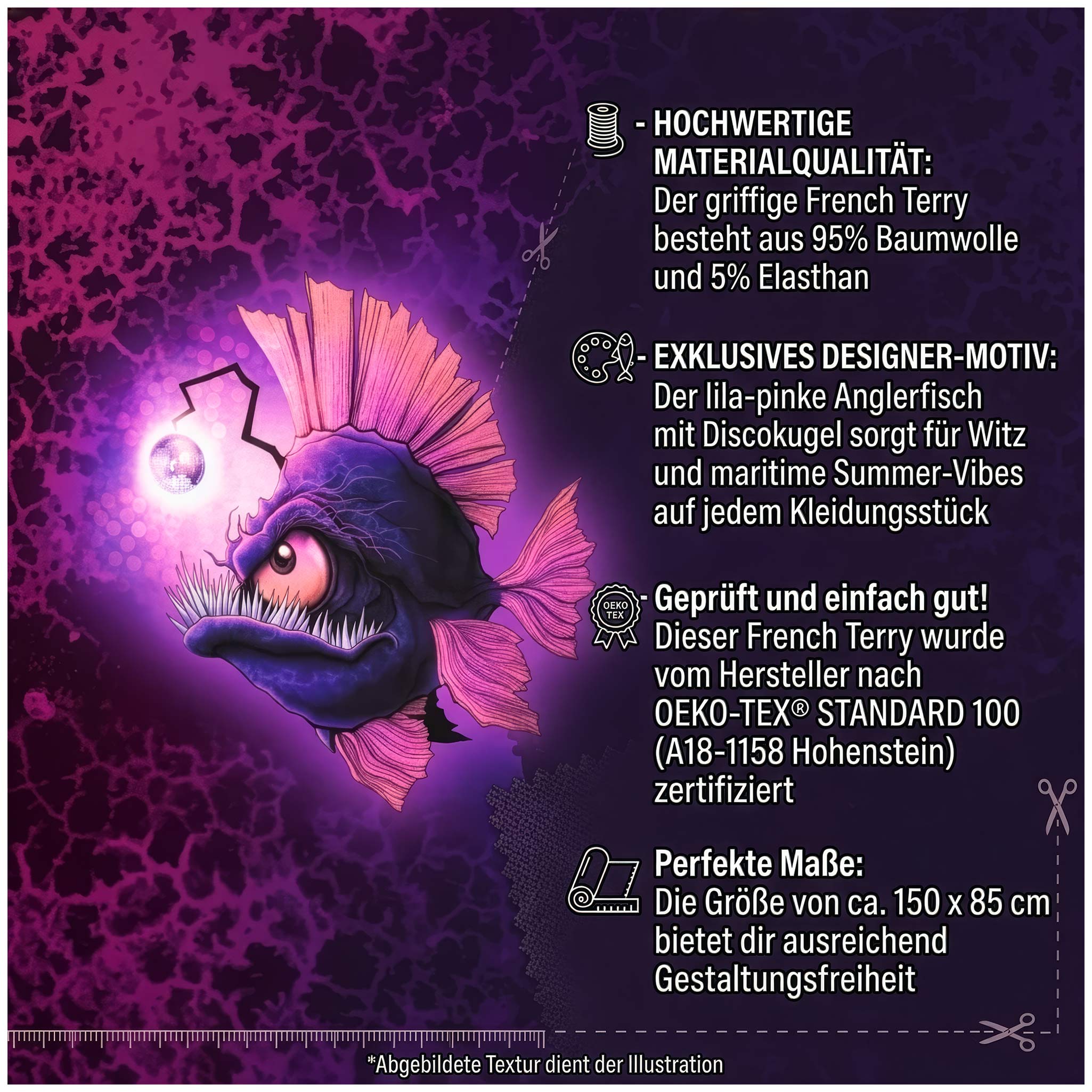- EXKLUSIVES DESIGNER-MOTIV: Setze ein Statement mit dem „Deep Water“-Panel von Thorsten Berger. Der lila-pinke Anglerfisch mit Discokugel sorgt für Witz und maritime Summer-Vibes auf jedem Kleidungsstück.