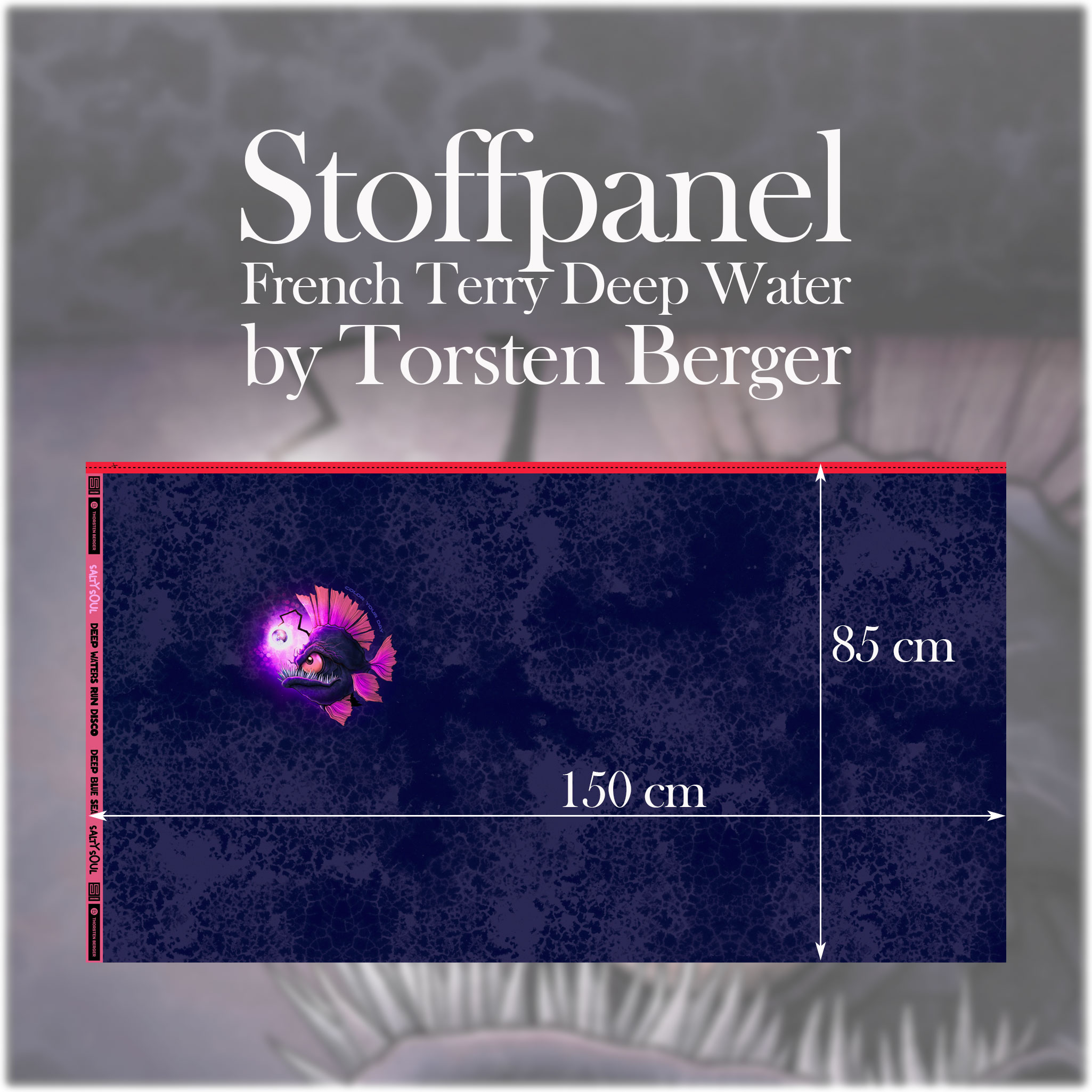 French Terry Stoffpanel Deep Water by Torsten Berger – Sommersweat Panel 150×85 cm – Swafing – Anglerfisch Motiv