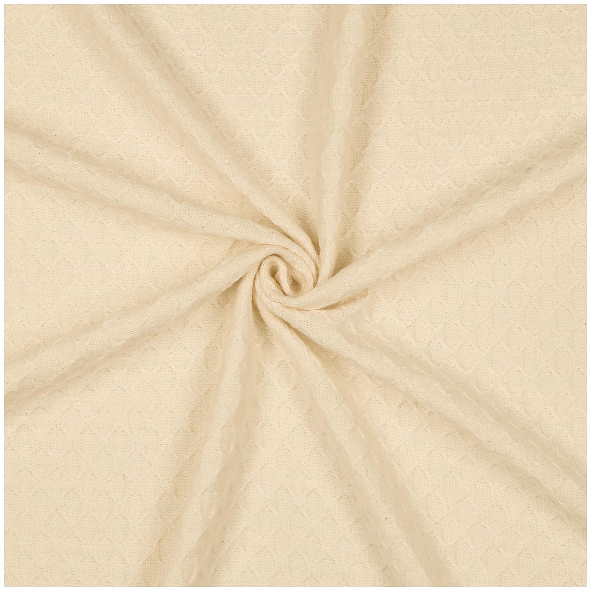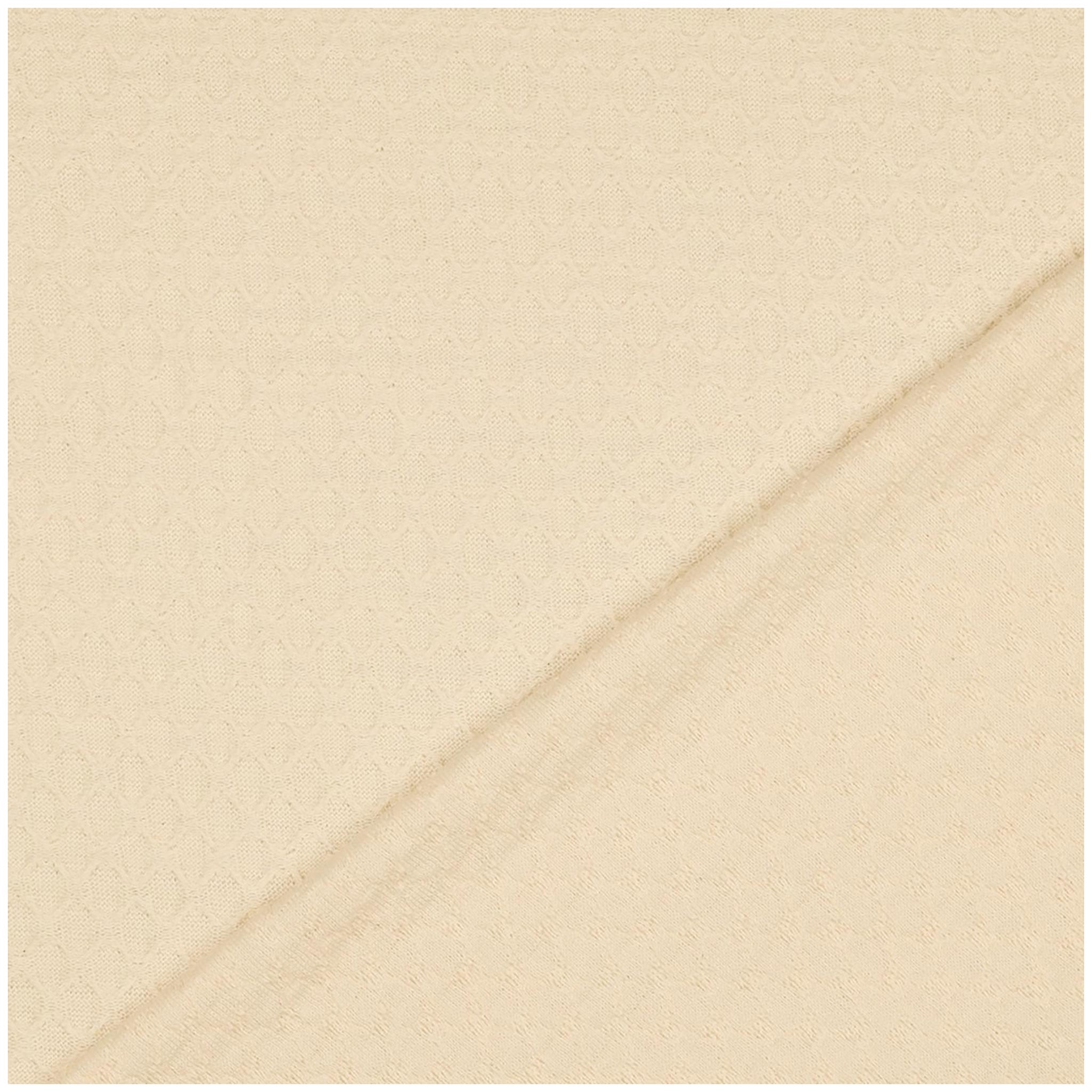 Dieser Jacquard-Strickstoff ist ein wahrer Allrounder für kreative Nähprojekte. Die zarte naturfarbene Basis und das stilvolle Rautenmuster schaffen eine warme, edle Optik, die in jedem fertigen Stück wunderbar zur Geltung kommt. Jeder Griff vermittelt Qualität, und die feine Struktur lässt den Stoff besonders edel wirken. Dank der unbehandelten, ungebleichten Baumwolle zeigt der Stoff seine natürliche Schönheit mit feinen, charaktervollen Details.