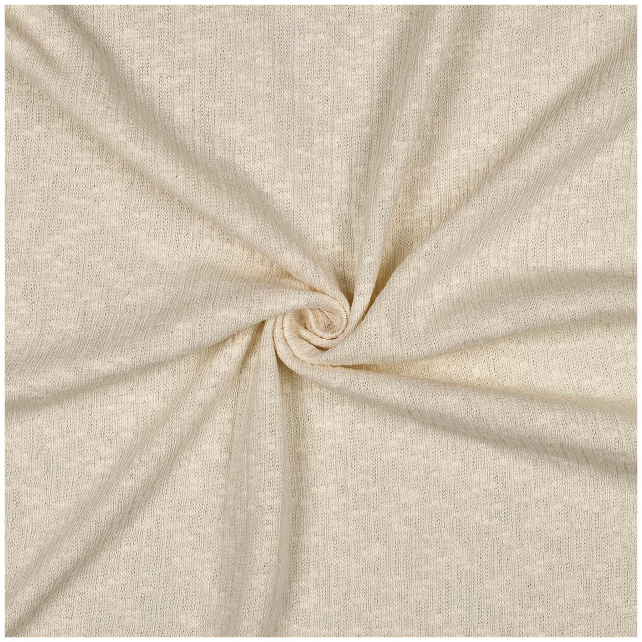 Der Strickstoff besteht aus 98 % Baumwolle und 2 % Elasthan und verbindet damit natürlichen Tragekomfort mit angenehmer Elastizität. Mit einer Breite von ca. 150 cm bietet er viel Spielraum beim Zuschnitt und eignet sich hervorragend für Kleidungsstücke mit bequemer Passform. Der Rohstoff ist ungebleicht und ungefärbt, vollständig unbehandelt und behält dadurch sein ursprüngliches Erscheinungsbild. Sichtbare Naturmerkmale gehören bewusst zum Stoff dazu. Bedenke, dass durch die naturbelassene Verarbeitung das Material, der Stoff empfindlicher auf Farbveränderungen bei längerer Sonneneinstrahlung reagiert.