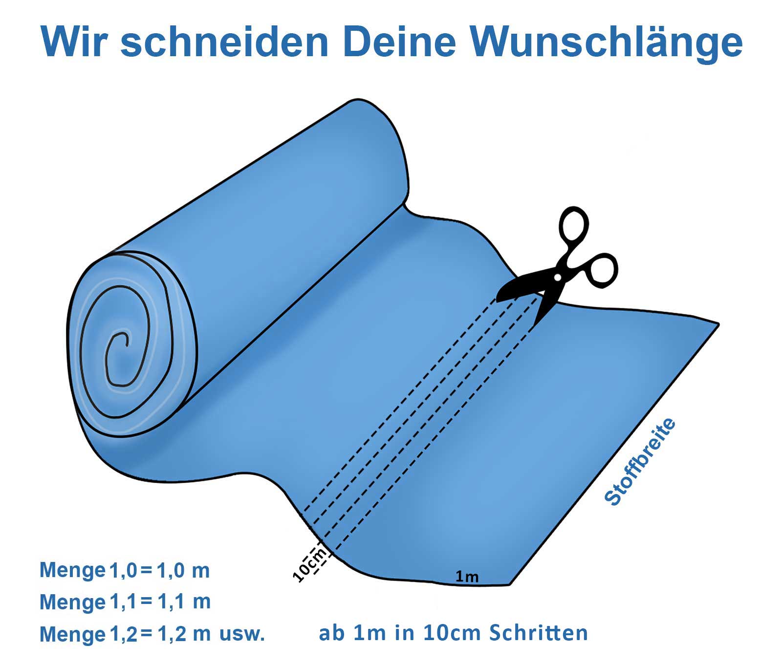 - Du erhältst den Stoff ab 1 Meter bei ca. 140 cm Breite, sodass Du großzügig zuschneiden kannst.