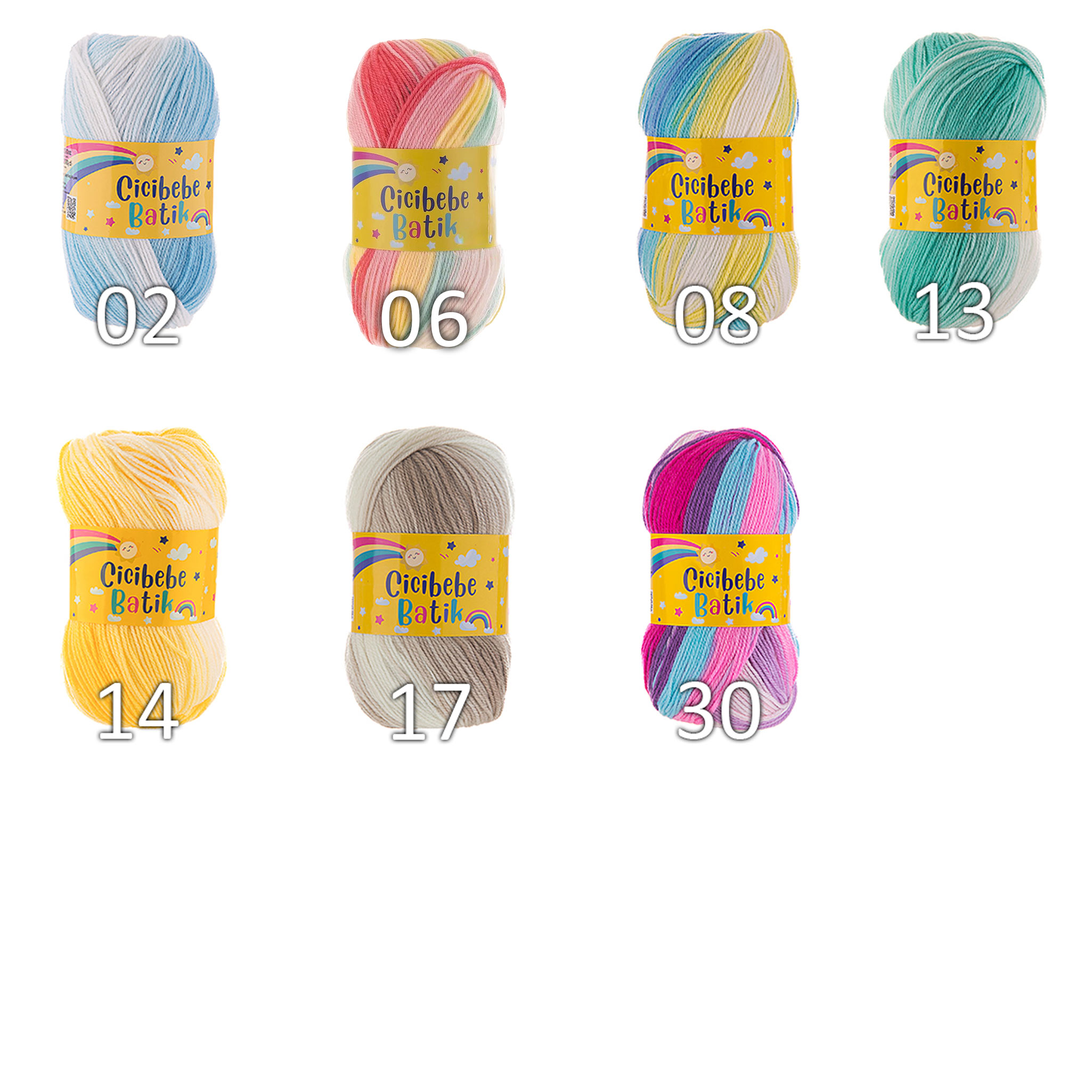 - Cicibebe Batik ist ein zauberhaftes Garn mit einem langen und wunderschönen Farbverlauf. Das Garn ist angenehm weich, sanft zur Haut und eignet sich wunderbar zum Stricken und Häkeln.